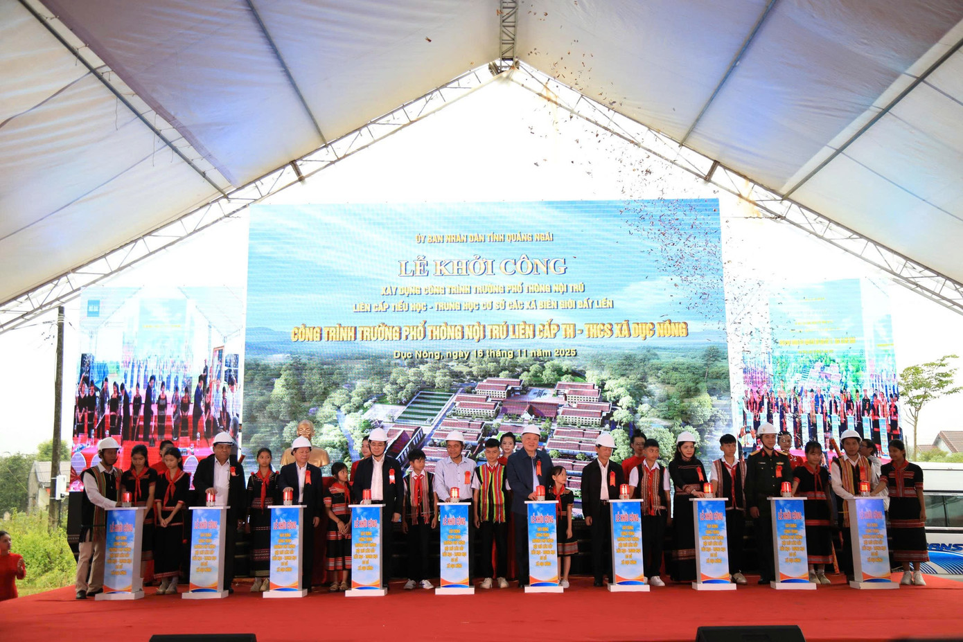 Ông Nguyễn Hoàng Giang - Chủ tịch UBND tỉnh Quảng Ngãi khẳng định, việc đầu tư xây dựng 4 trường nội trú liên cấp ở vùng biên là bước cụ thể hóa chủ trương chăm lo giáo dục của Đảng và Nhà nước đối với đồng bào dân tộc thiểu số. “Tỉnh cam kết tập trung mọi nguồn lực, phát huy truyền thống hiếu học và tinh thần đoàn kết để các công trình sớm hoàn thành, trở thành những ngôi trường kiểu mẫu, là điểm sáng của giáo dục Quảng Ngãi”, ông Giang nói.