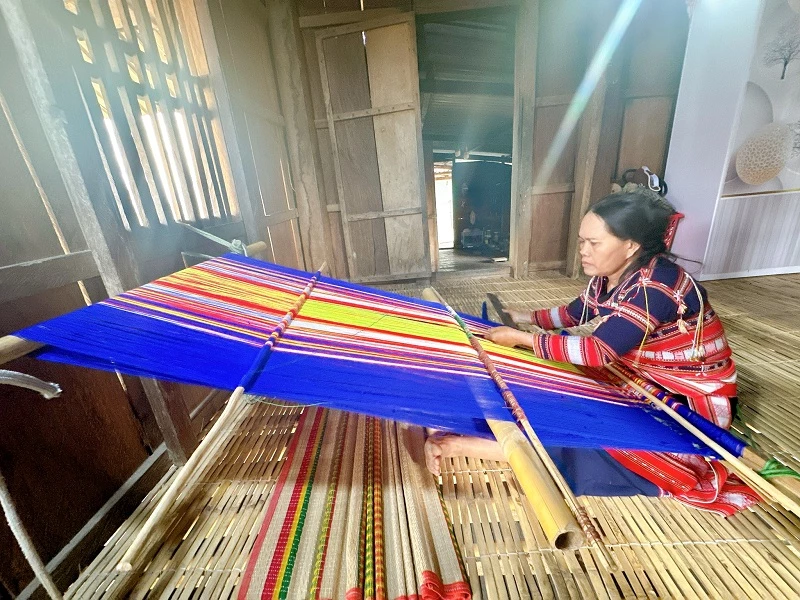 Dệt thổ cẩm ở làng Canh Tiến.