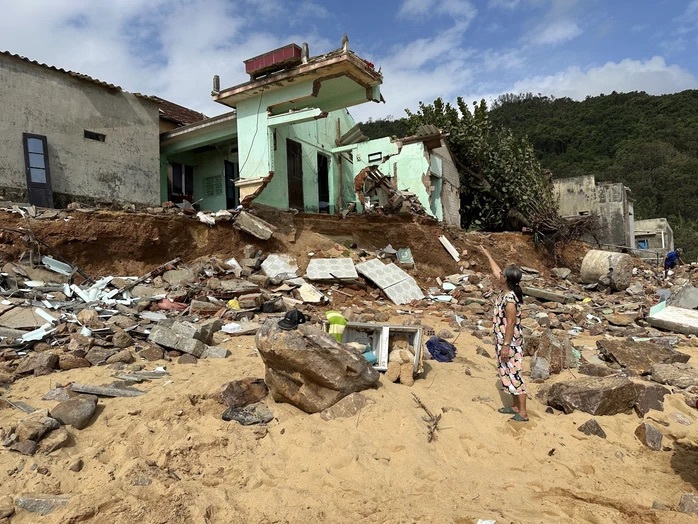 Bão số 13 làm sập nhiều căn nhà ởlàng chài ven biển Phú Thứ, xã Phù Mỹ Bắc, tỉnh Gia Lai