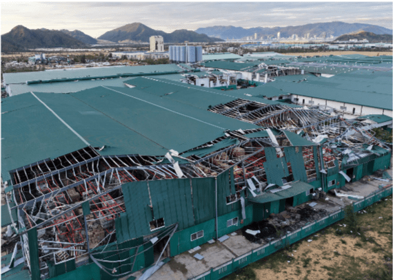 Mộ doanh nghiệp sản xuất tại Khu công nghiệp Nhơn Hội - Khu A bị thiệt hại nhà xưởng do bão số 13. Ảnh: Ban Quản lý Khu kinh tế tỉnh Gia Lai.
