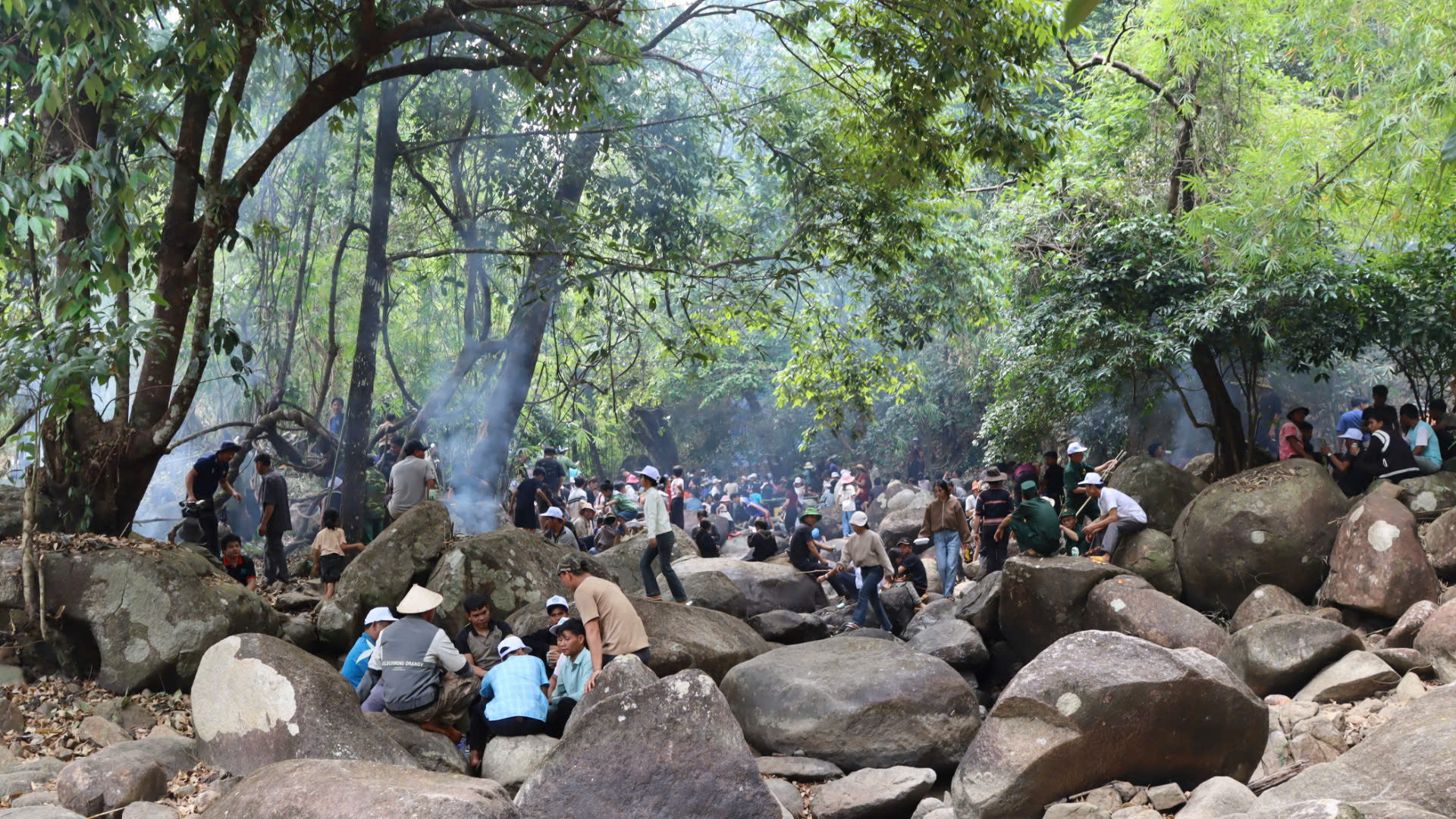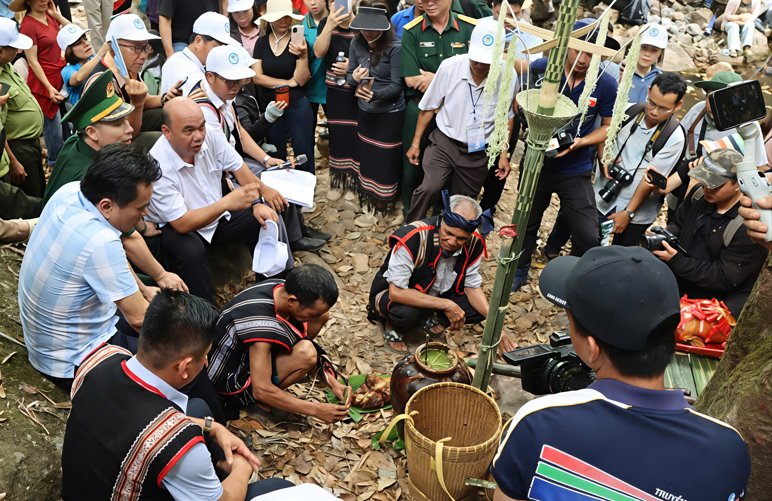 Địa điểm diễn ra lễ cúng là khu rừng có suối chảy qua