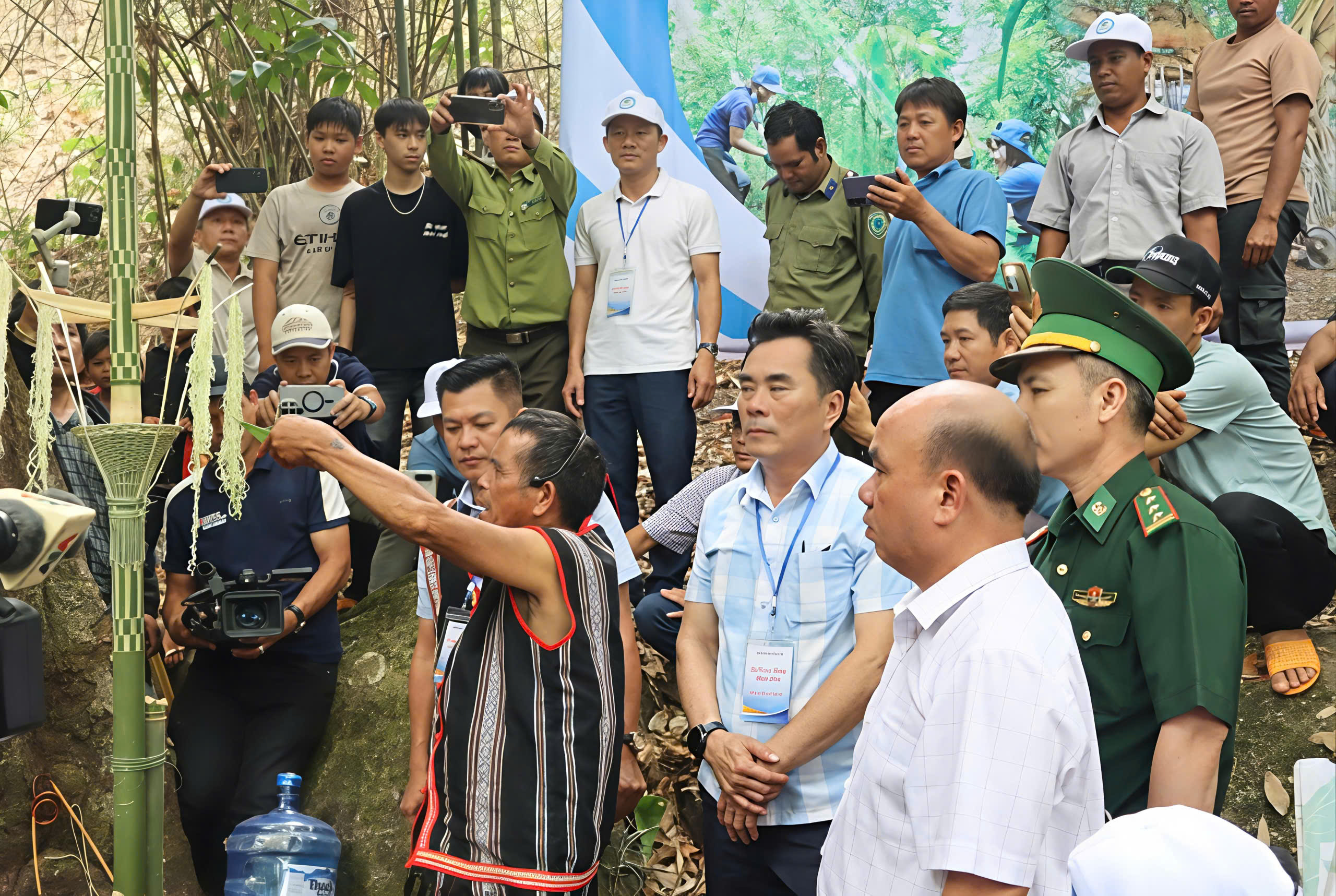 Tại buổi lễ, các già làng thay mặt cộng đồng thực hiện nghi thức cúng, cầu mong thần rừng phù hộ dân làng bình an, mùa màng thuận lợi, mưa thuận gió hòa, đồng thời vận động bà con cùng gìn giữ, bảo vệ rừng.