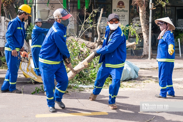 Công ty cổ phần Môi trường Bình Định huy động toàn bộ nhân lực và phương tiện thu gom rác, cây cối ngã đổ, cát tràn... sớm trả lại cảnh quan xanh-sạch-đẹp cho địa bàn.