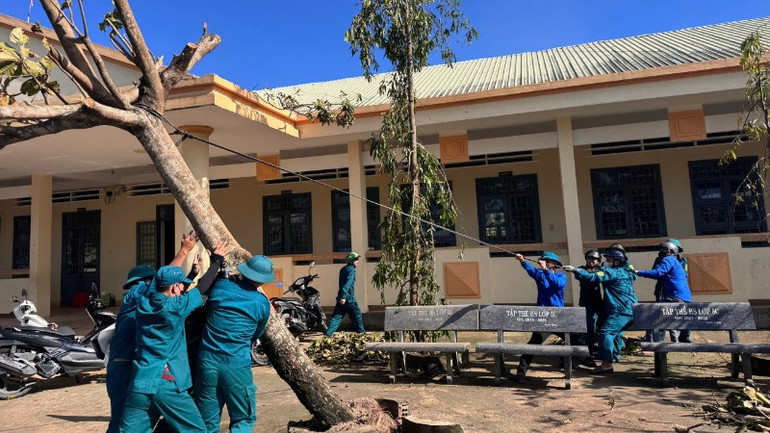 Tại tỉnh Gia Lai, Bộ Chỉ huy Quân sự tỉnh đã điều động lực lượng đến các điểm bị cô lập để hỗ trợ vận chuyển nhu yếu phẩm, dựng lại nhà tạm cho người dân có nhà bị tốc mái. Lực lượng Công an tỉnh phối hợp với chính quyền địa phương bảo đảm an ninh trật tự tại các điểm sơ tán và hỗ trợ người dân trở về nhà an toàn.