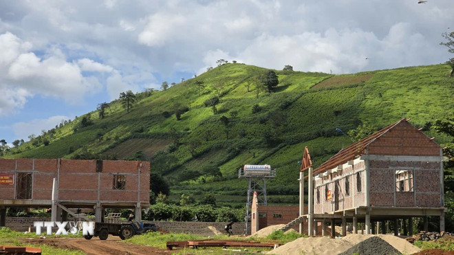 Công trình Nhà rông tại làng Ia Gri, xã Biển Hồ, tỉnh Gia Lai bị yêu cầu tháo dỡ vì không đúng kiến trúc văn hóa truyền thống. (Ảnh: Hồng Điệp/TTXVN)