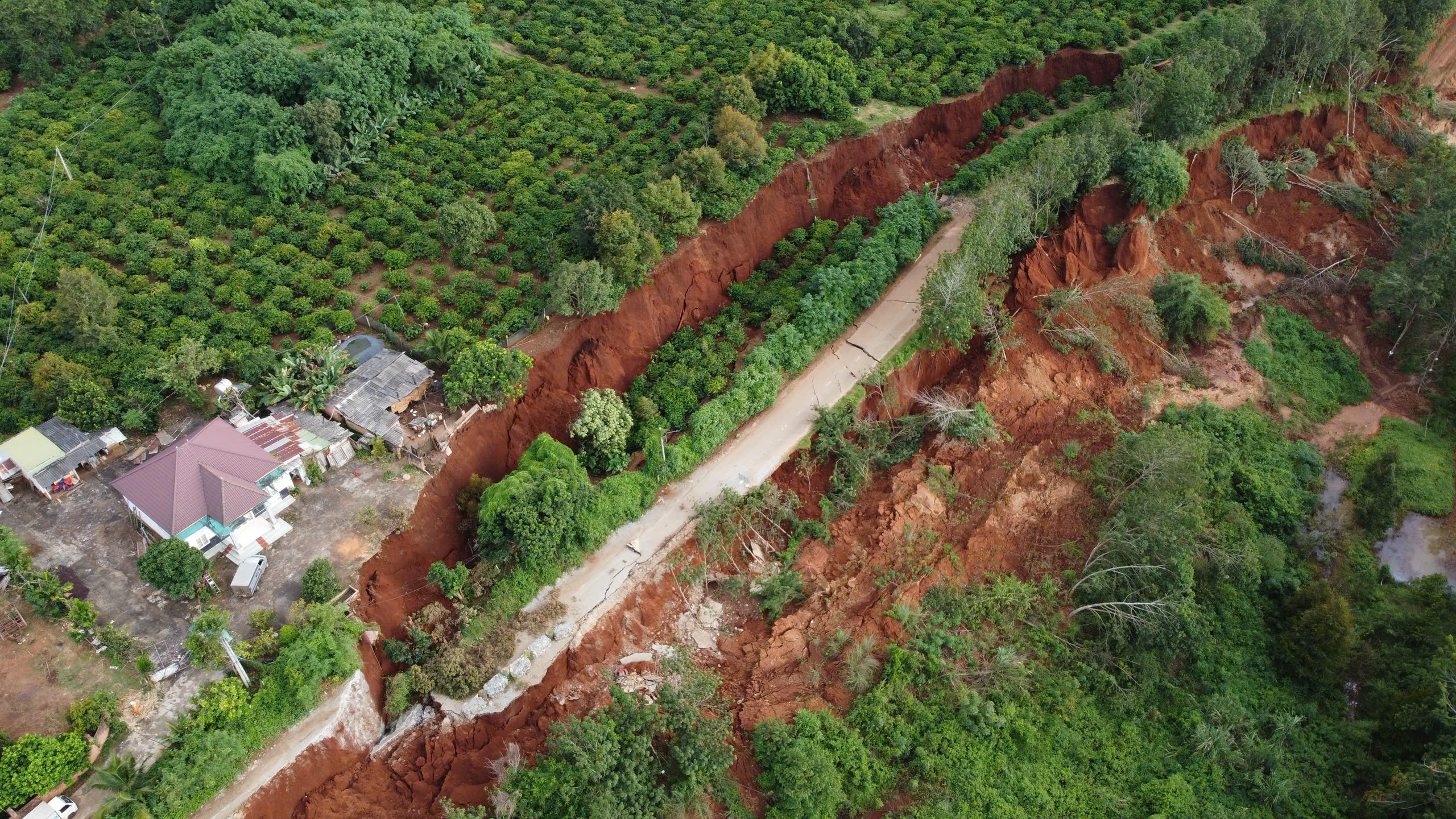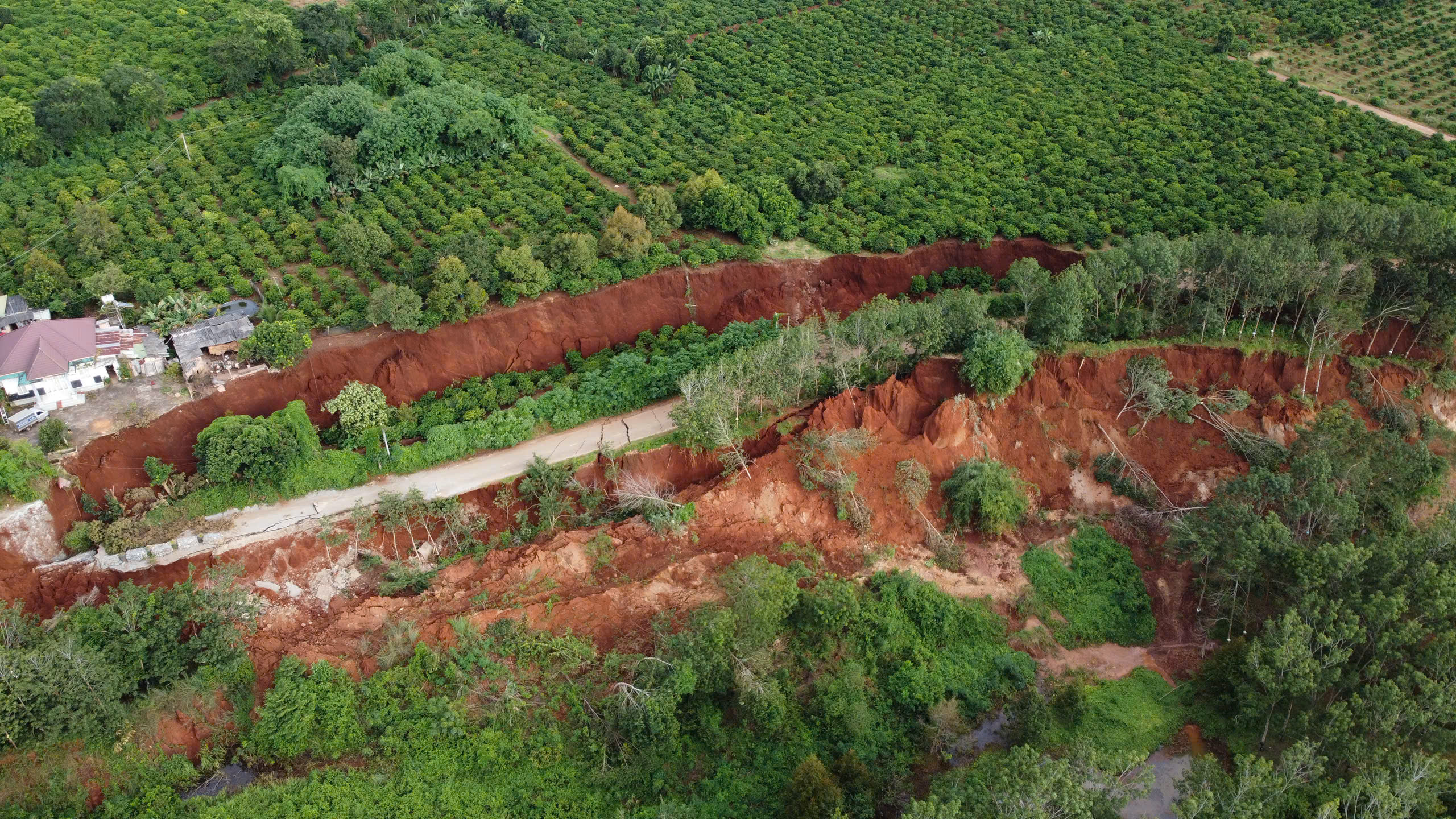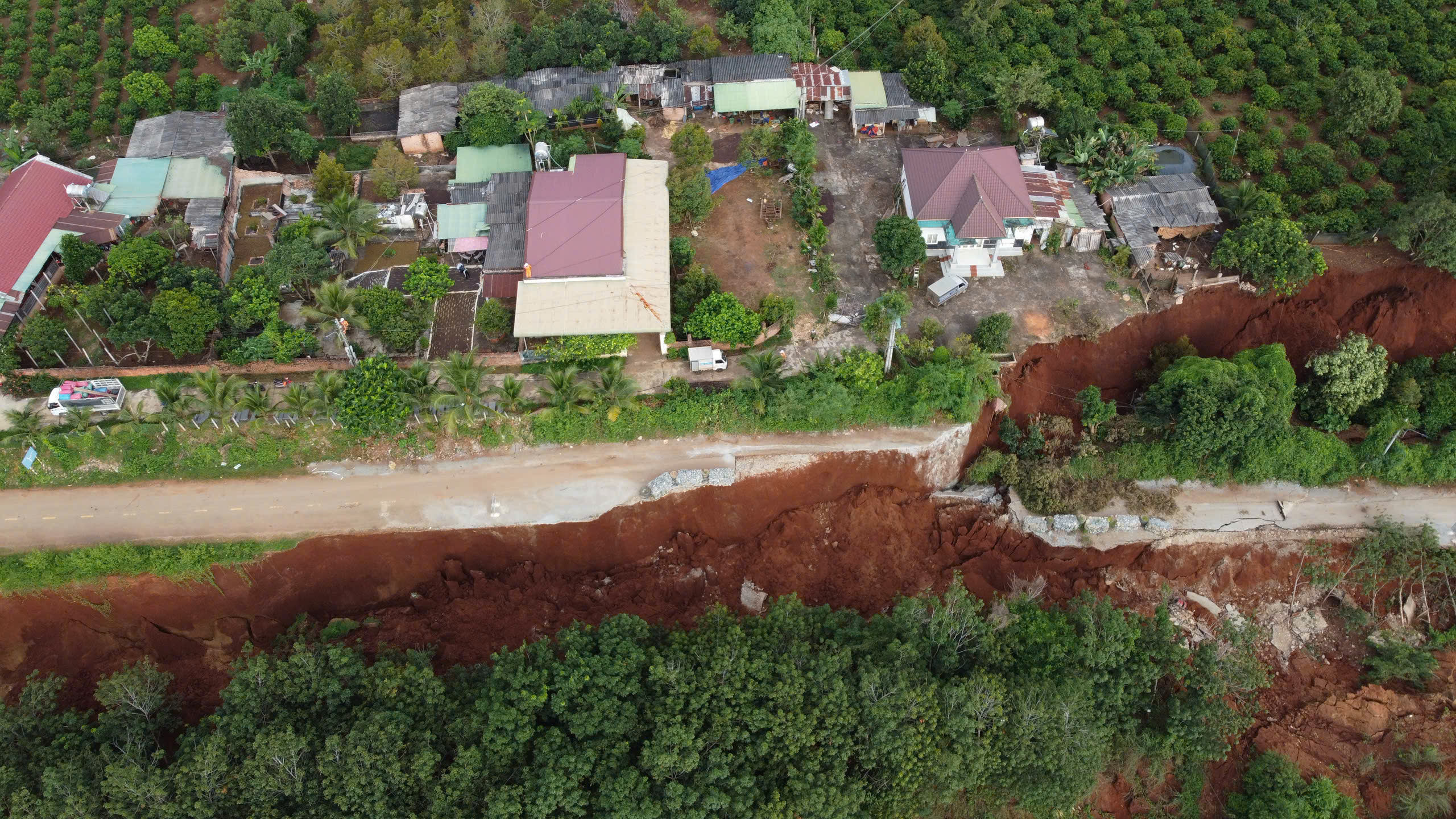 Đoạn đường bị đứt gãy, giao thông tê liệt. Ảnh: RCT