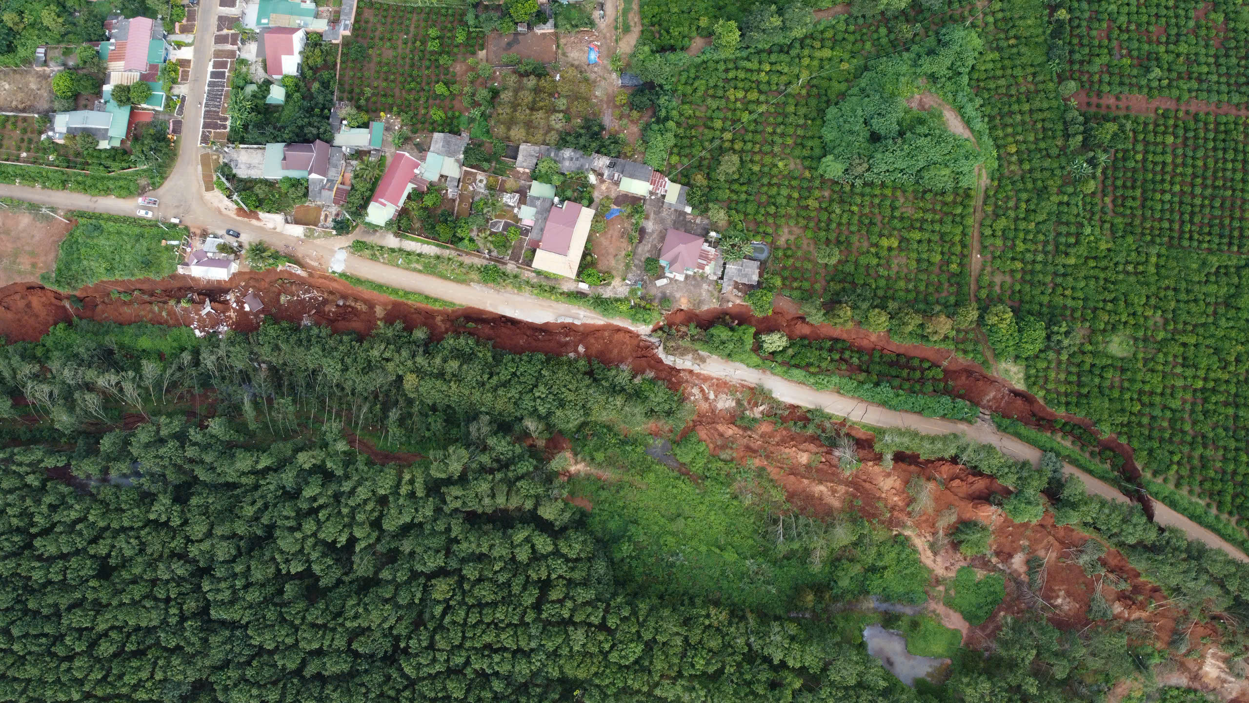 Đoạn đường bị sạt lở, đứt gãy hoàn toàn. Ảnh: RCT