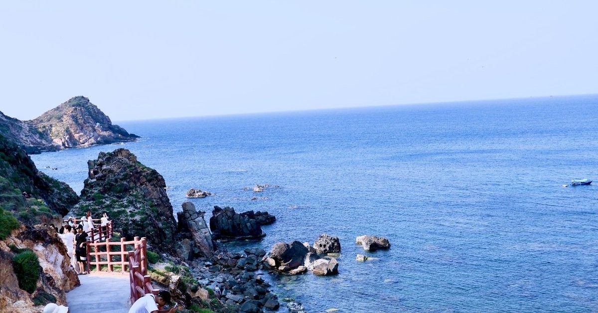 Điểm hấp dẫn nhất tại Eo Gió là cung đường đi bộ men theo sườn núi, uốn lượn mềm mại giữa lưng chừng trời. Từ đây, du khách có thể phóng tầm mắt bao quát toàn bộ eo biển, cảm nhận từng đợt gió mặn mòi thổi lồng lộng và thu vào tầm mắt vẻ đẹp khoáng đạt của biển trời Quy Nhơn Đông.