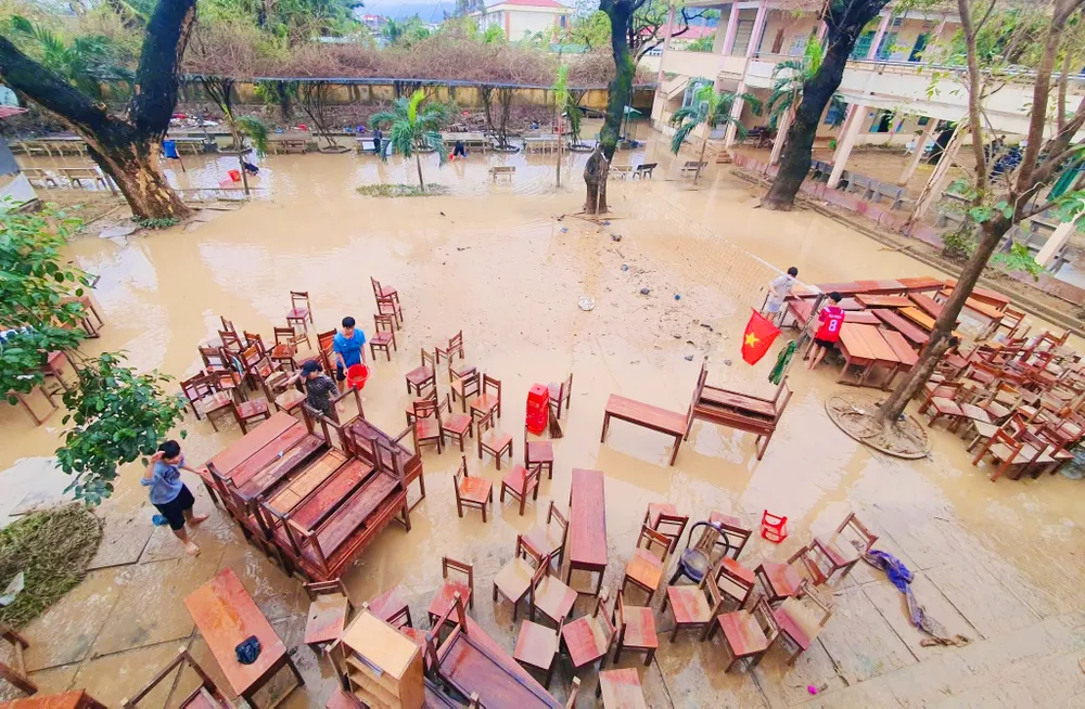 Lũ lên nhanh khiến nhiều trường học không kịp trở tay, nhiều tài liệu, thiết bị hư hỏng.