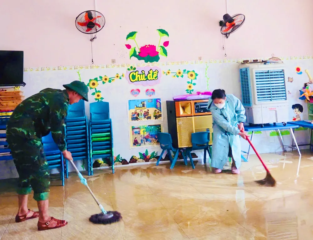 Sau lũ, các trường học trên địa bàn tỉnh Gia Lai đã bắt tay dọn dẹp vệ sinh trường lớp, đảm bảo việc học đúng tiến độ. Ảnh: TD