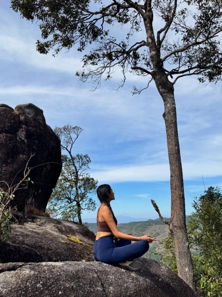 "Khi đứng trên đỉnh, nhìn xuống núi rừng rộng lớn, mọi mệt mỏi dường như tan biến. Thùy nhận ra giới hạn đôi khi chỉ là điều mình tự đặt ra. Nếu đủ tin và đủ bền bỉ, mình có thể đi xa hơn mình nghĩ rất nhiều", người đẹp sinh năm 1992 bộc bạch sau khi chạm tay vào cột mốc đỉnh núi lúc 11h trưa.