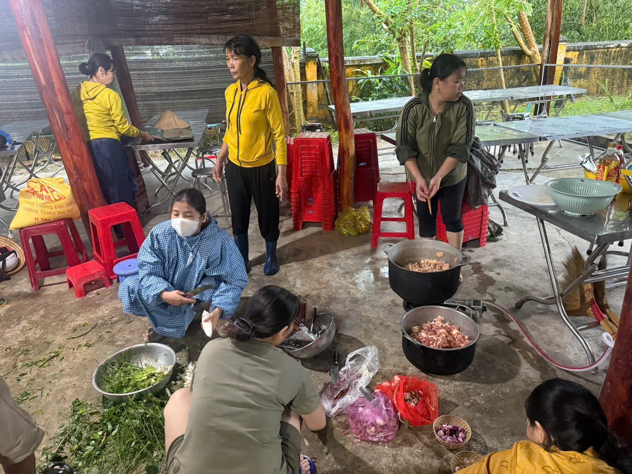 Cán bộ xã Uar nấu ăn phục vụ dân chạy lũ