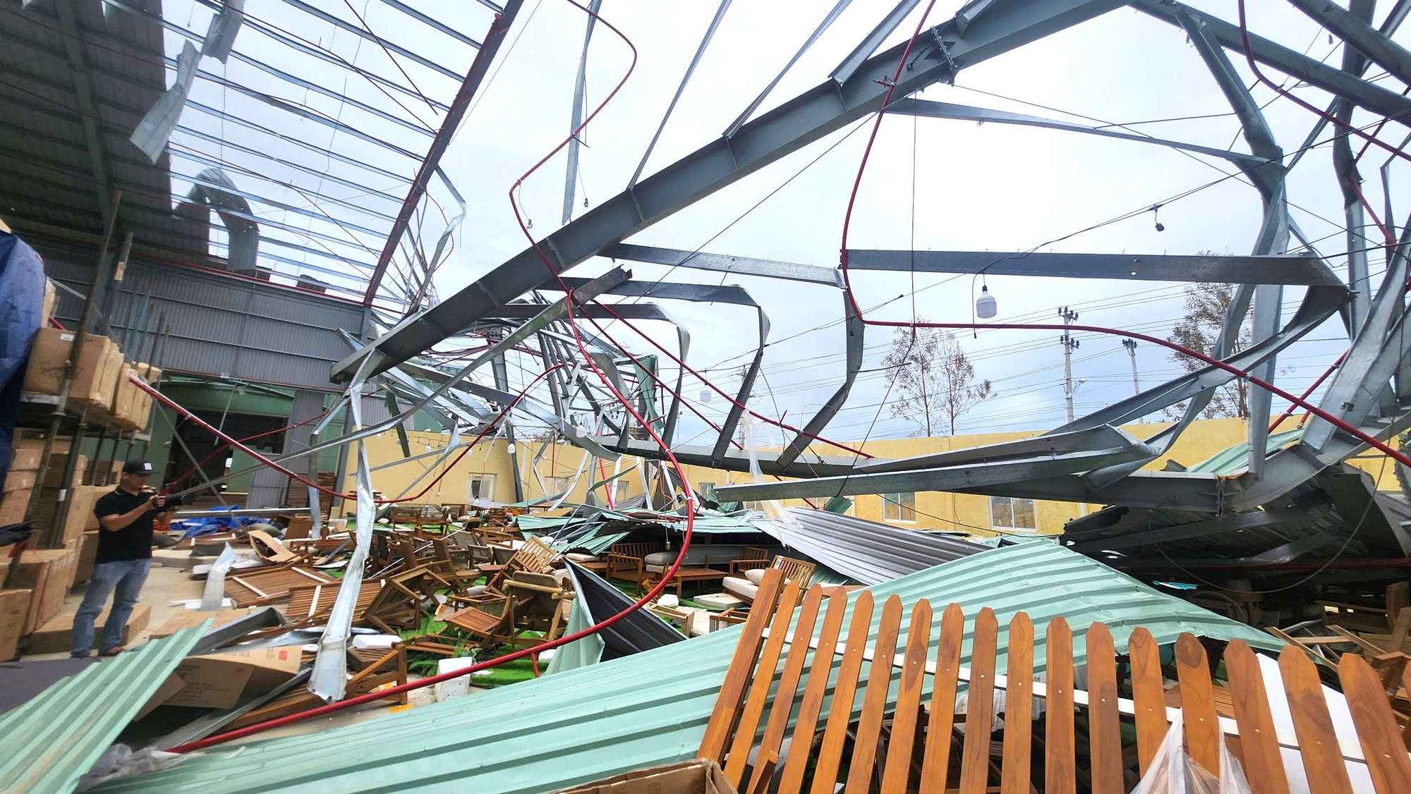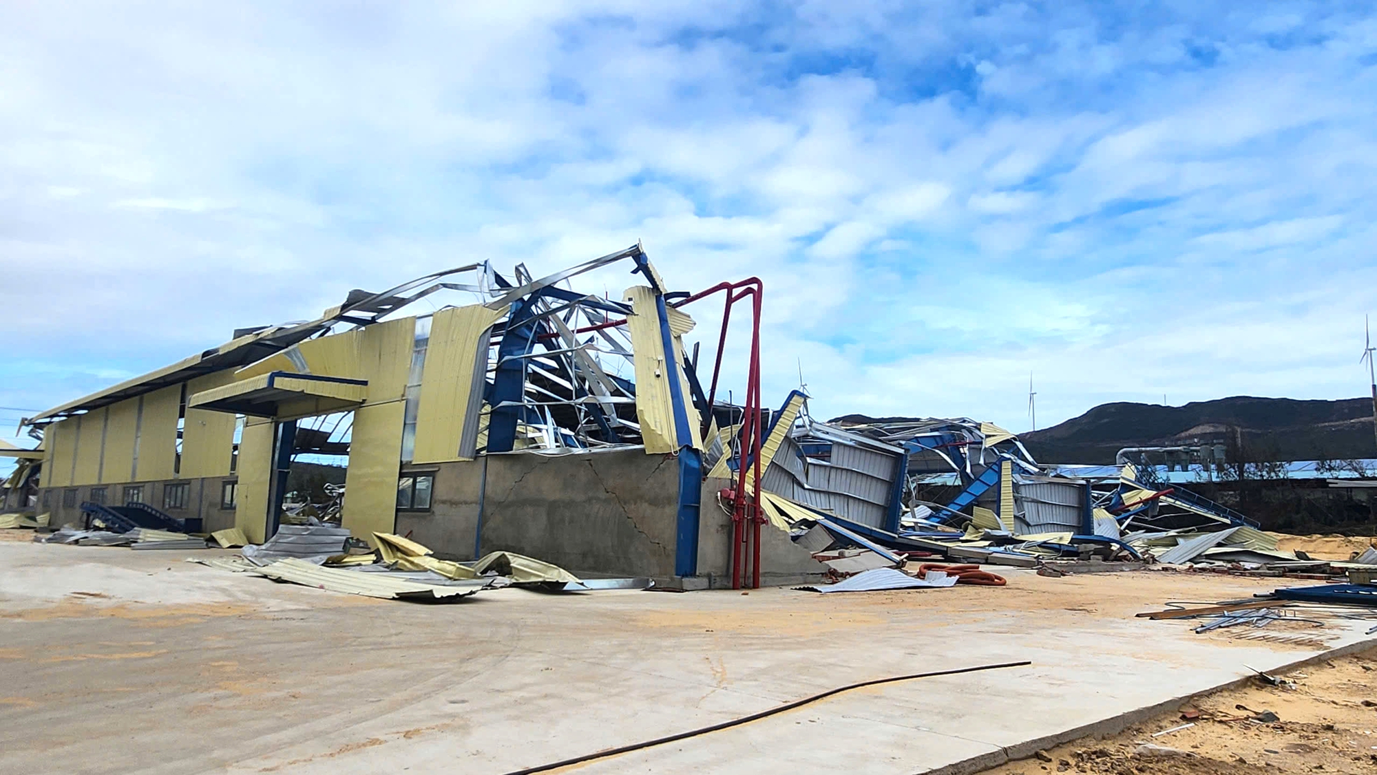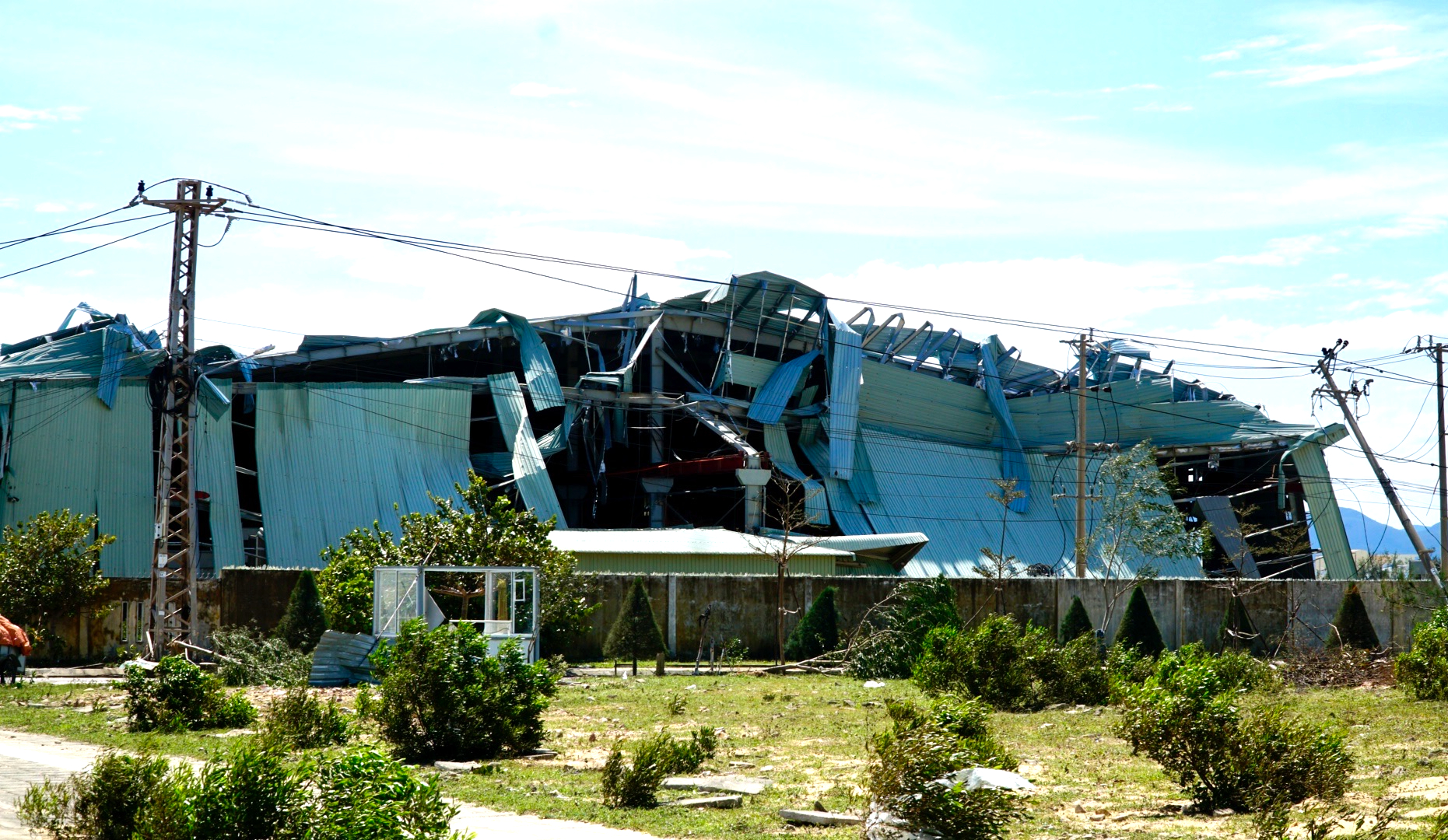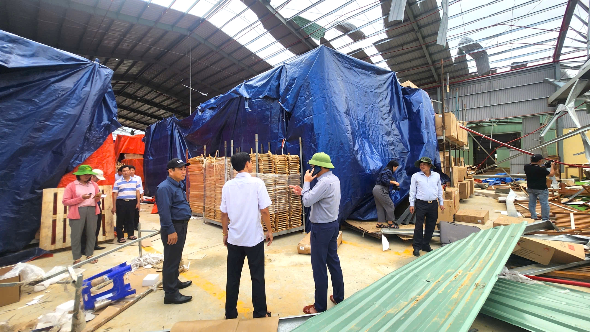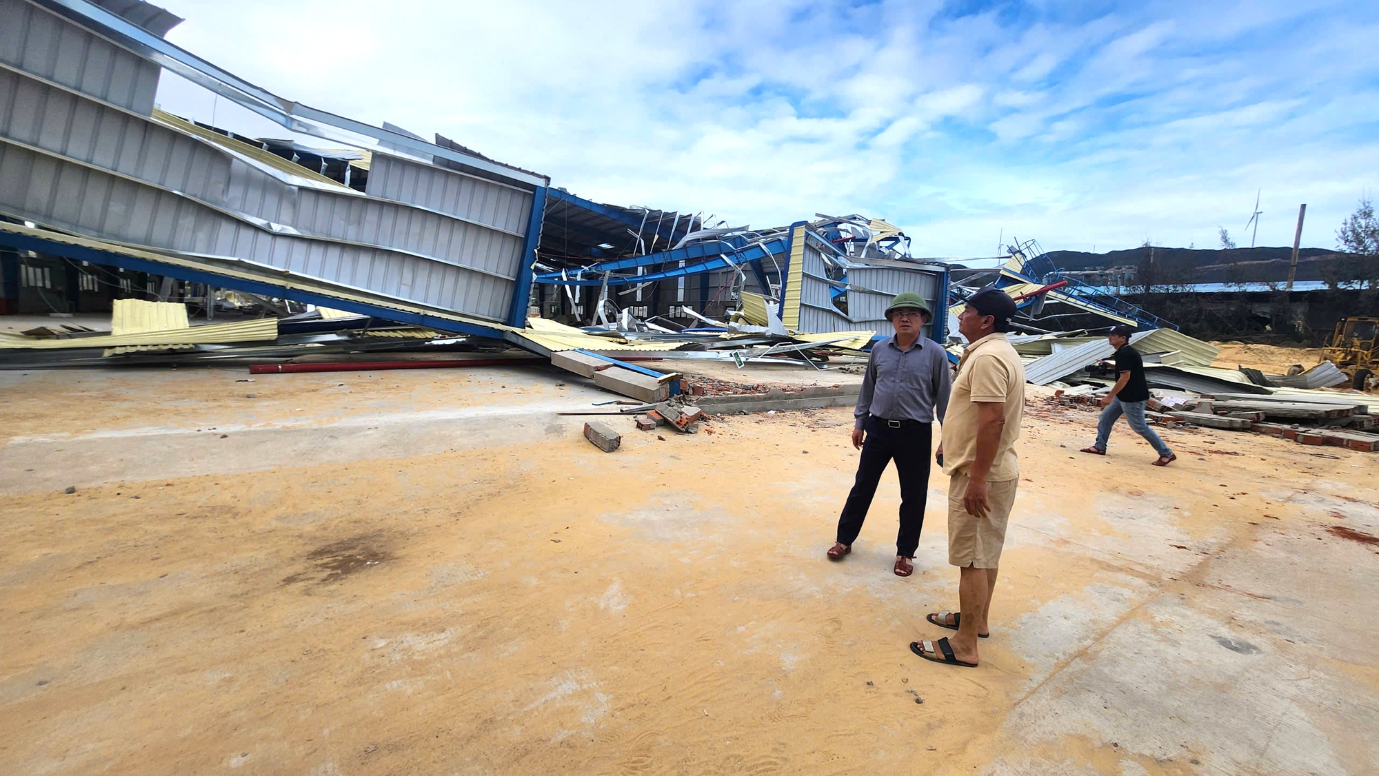 Đây là khu vực chịu ảnh hưởng trực tiếp của hoàn lưu bão và cũng là khu vực tập trung nhiều doanh nghiệp với hàng chục nhà xưởng được xây dựng bằng khung thép, mái tôn, nên thiệt hại sau bão rất lớn.