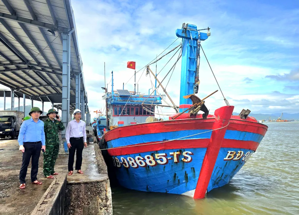 Ông Phạm Anh Tuấn, Chủ tịch UBND tỉnh Gia Lai, kiểm tra công tác ứng phó bão số 13 tại cảng cá Đề Gi.