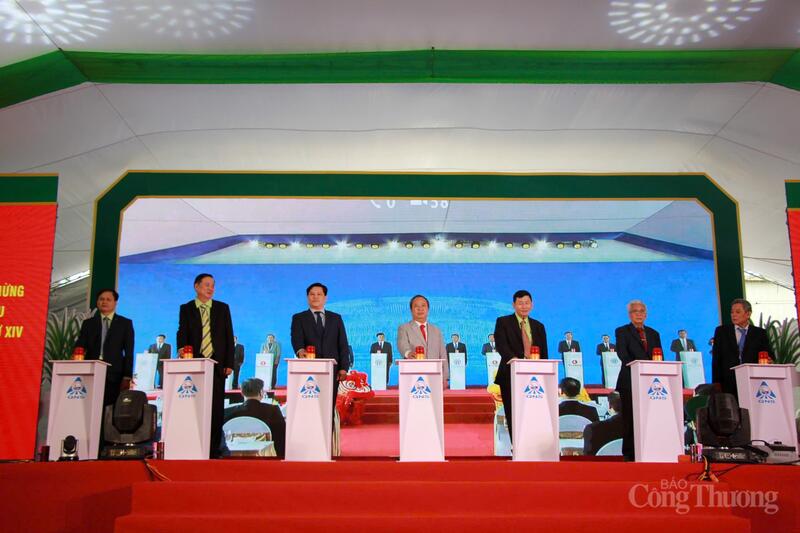 Các đại biểu nhấn nút khởi công Dự án đầu tư mở rộng nâng công suất Nhà máy Đường An Khê giai đoạn 2 lên 25.000 TMN. Ảnh: Hiền Mai