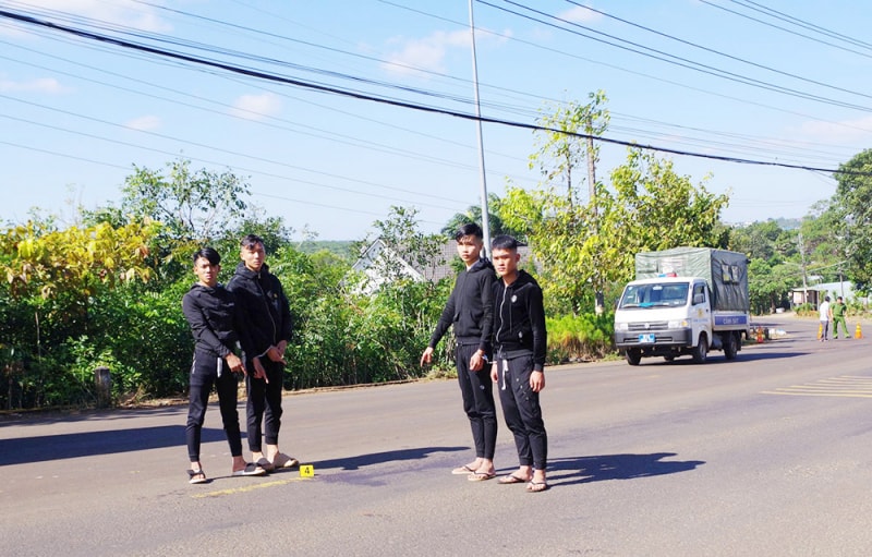 Các đối tượng thực nghiệm hiện trường. Ảnh: phòng Kỹ thuật hình sự, Công an tỉnh Gia Lai cung cấp