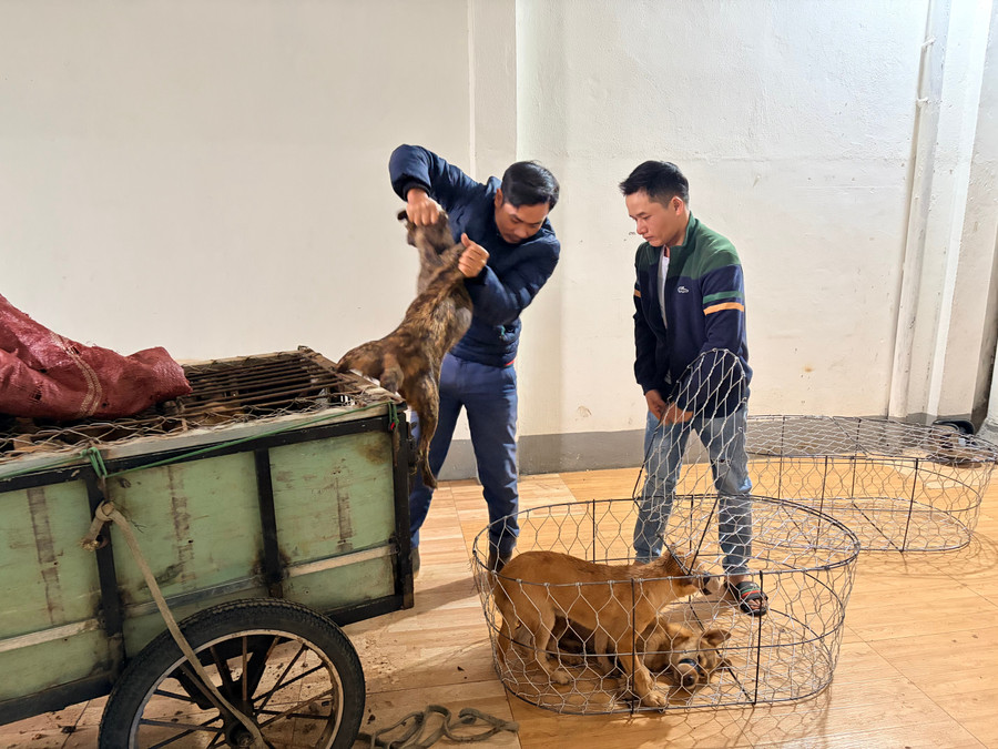 Qua đó đã phát hiện, thu giữ nhiều vật dụng các đối tượng dùng để hành nghề cùng 43 con chó còn sống.