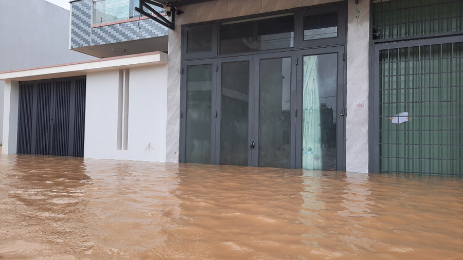 Sáng 20-11, nhiều khu dân cư tại tổ dân phố Trung Tín 1, xã Tuy Phước bị ngập sâu. Ảnh: An Nhiên