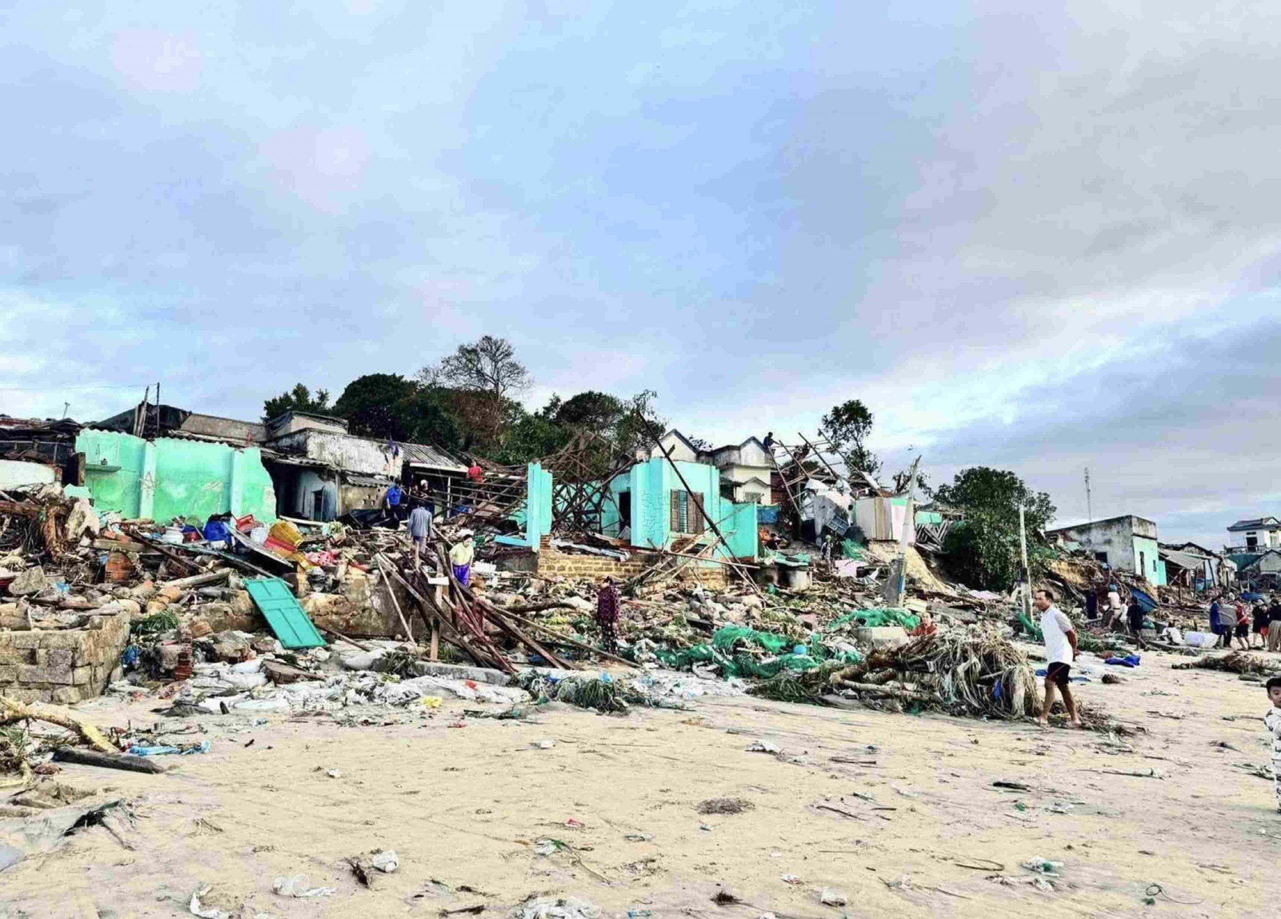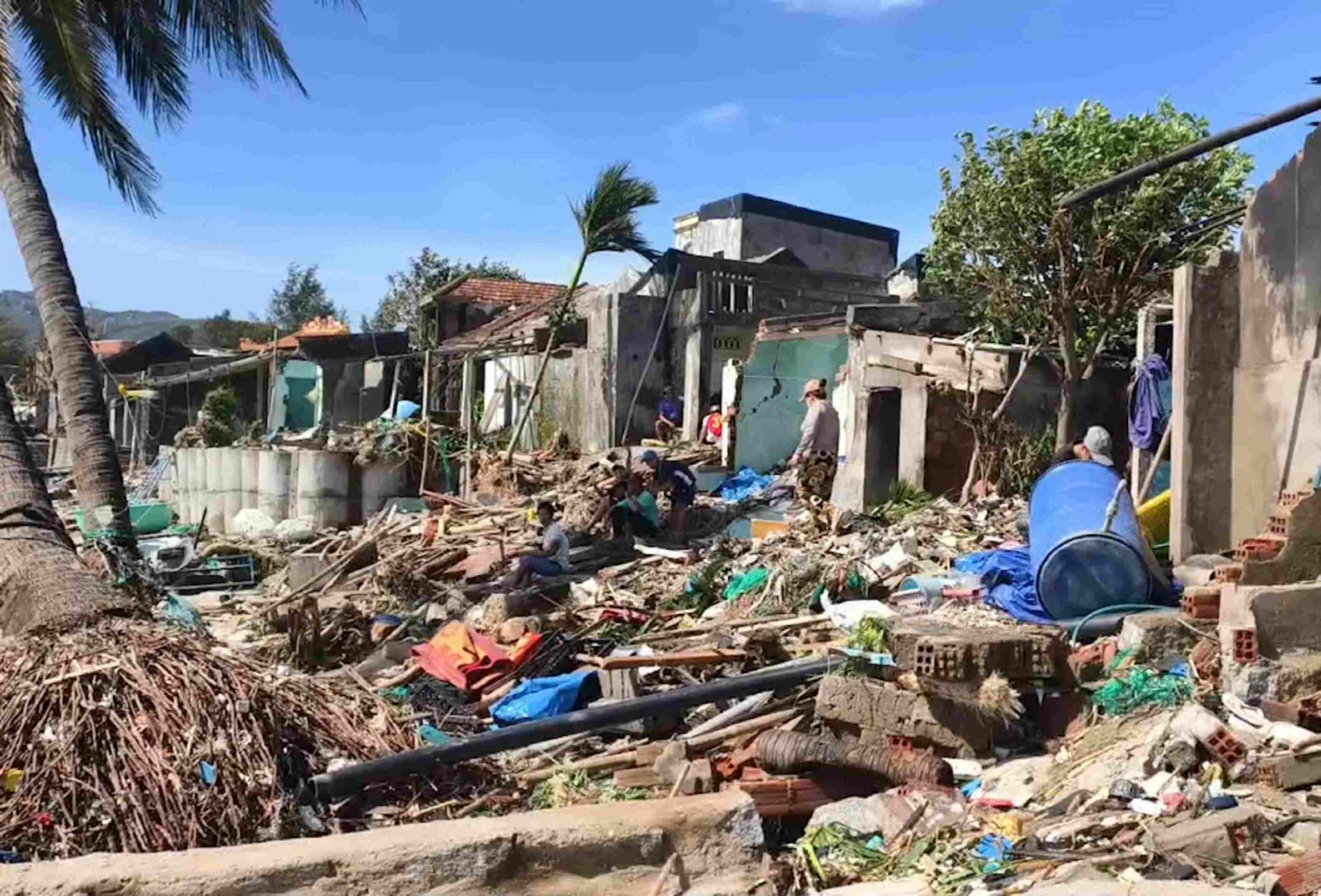 Nhiều làng chài như Tịnh Khê (Quảng Ngãi), Xuân Thạnh, Đề Gi, Quy Nhơn (Gia Lai), Xuân Đài (Đắk Lắk)… cũng chìm trong đổ nát. Người dân tranh thủ thời tiết tạm yên để khôi phục lại sinh hoạt, sửa chữa nhà cửa, tìm lại ngư cụ còn sót. Ảnh: Tiêu Dao – Quách Tài