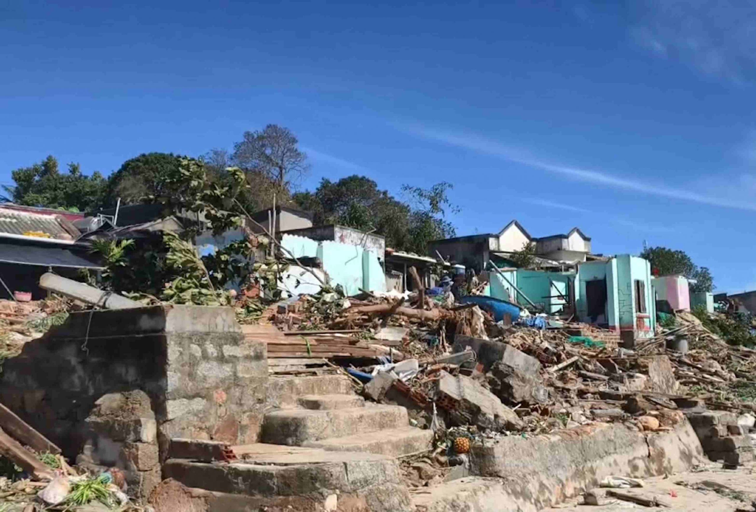 Tại Đắk Lắk, bão khiến hơn 2.000 căn nhà bị sập, tốc mái. Thiệt hại về nuôi trồng thủy sản rất lớn, đặc biệt tại khu vực nuôi tôm hùm lồng bè. Ảnh: Tiêu Dao – Quách Tài