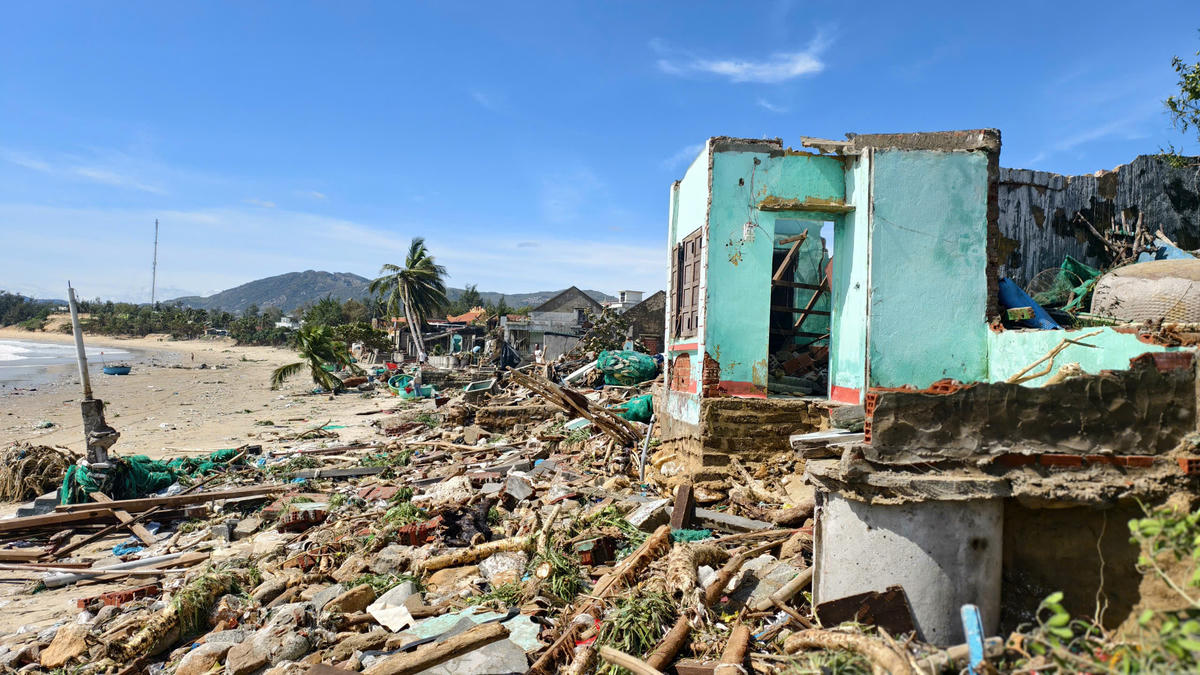 Ông Nguyễn Văn Cường, trú tại xã Phú Mỹ Đông kể: “Sau khi bão đi qua, nhìn quanh xóm chỉ thấy cảnh đổ nát. Nhà cửa ven biển bị sóng đánh sập, tường gạch ngã đổ, mái tôn bay tứ tung, vật dụng trong nhà bị nước cuốn trôi sạch. Cảnh tượng tan hoang đến xót lòng. Giờ đây, rác thải, cây cối, gạch vỡ nằm ngổn ngang khắp nơi, còn căn nhà của tôi thì hư hỏng nặng, gần như không còn gì có thể sử dụng được nữa. Chúng tôi chỉ biết đứng nhìn mà rơi nước mắt, chẳng biết rồi sẽ xoay xở ra sao trong những ngày sắp tới".