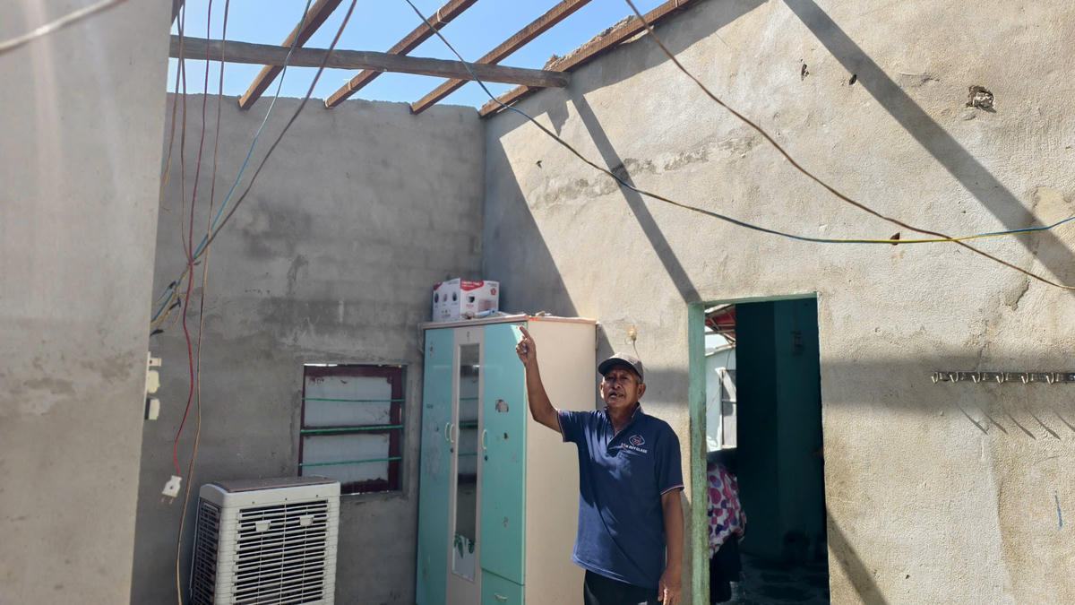 Một góc căn nhà của người dân làng chài Xuân Thạnh bị tốc mái hư hỏng. Ảnh: Chí Đại.