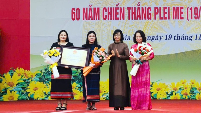 Phó Chủ tịch Ủy ban nhân dân tỉnh Nguyễn Thị Thanh Lịch trao Bằng xếp hạng di tích lịch sử cấp tỉnh “Chiến thắng thung lũng Ia Drăng năm 1965” cho Đảng bộ, chính quyền và nhân dân xã Ia Púch.