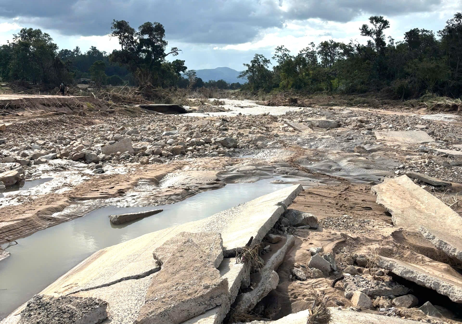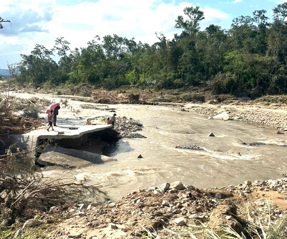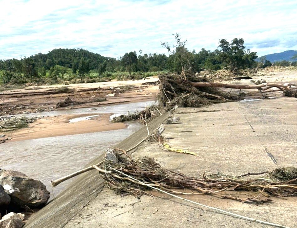Đến nay, tuyến đường đi làng Hrách có 2 vị trí bị lũ quét cuốn trôi (Vị trí 1 tại Km 5+600: Cống và đường bê tông bị cuốn trôi chiều dài khoảng 120m; Vị trí 2 tại Km 7+ 300: Sạt mái taluy bê tông chiều dài khoảng 50m). Đây là tuyến đường liên xã, huyết mạch, duy nhất kết nối làng Hrách với trung tâm xã và các khu vực lân cận khiến 234 hộ, 1.172 nhân khẩu bị chia cắt.