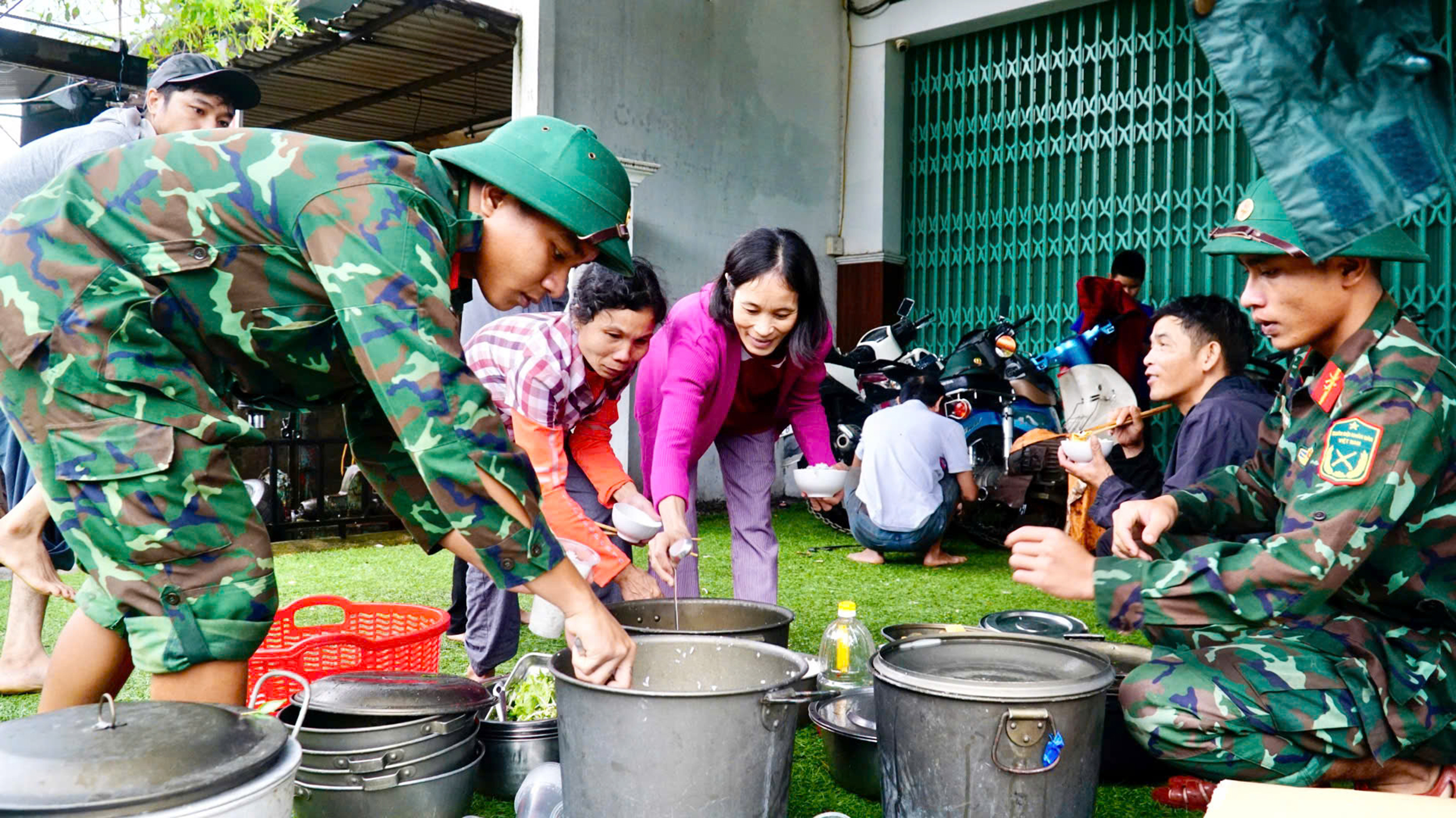Lực lượng bộ đội nấu ăn cho người dân vùng bị ngập sâu