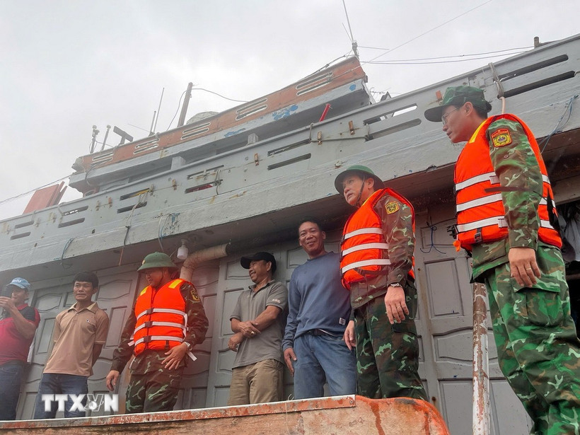 Bộ đội biên phòng Gia Lai vận động ngư dân lên bờ tránh trú bão. (Ảnh: TTXVN phát)