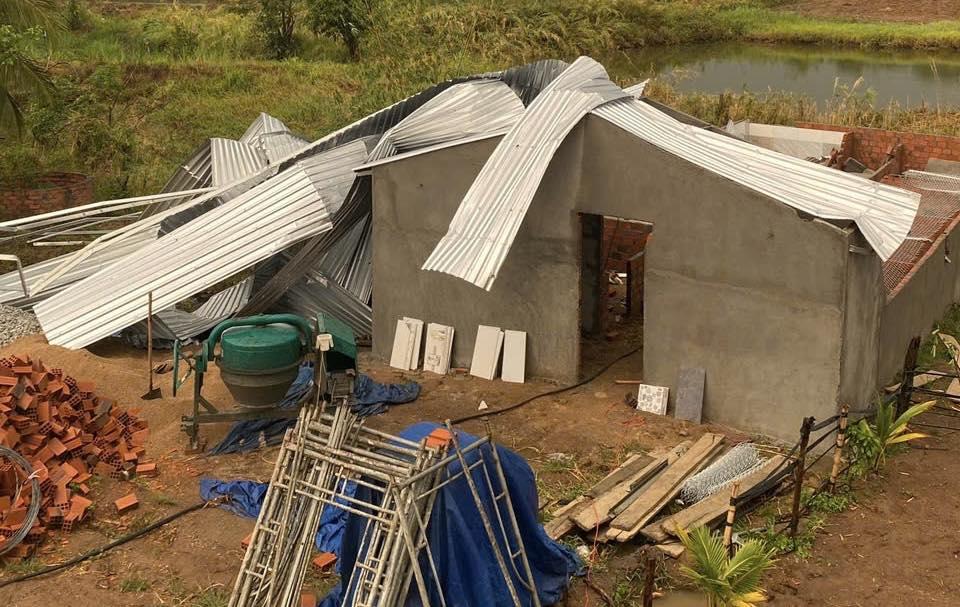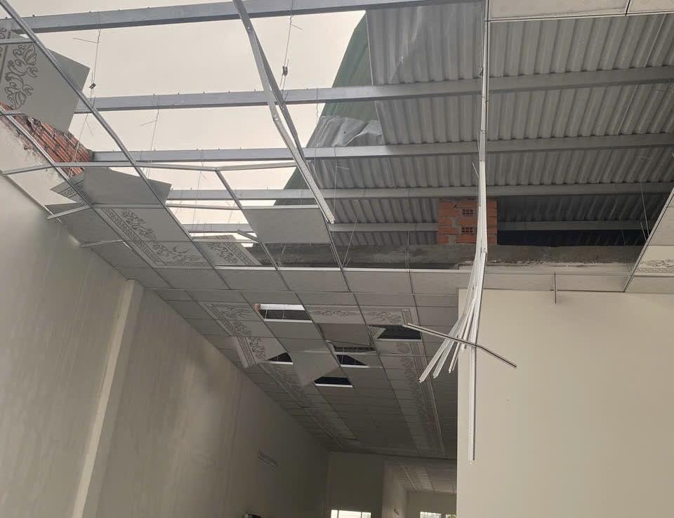 Mưa lớn kèm lốc xoáy khiến nhiều nhà bị tốc mái.