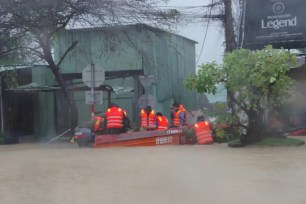 Lực lượng cứu hộ tiếp cận người dân vùng ngập sâu.