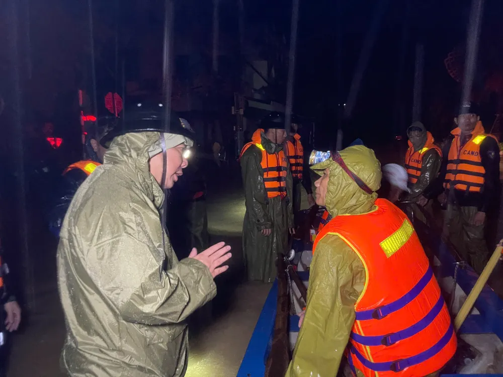 Trong đêm, Thiếu tướng Lê Quang Nhân, Giám đốc Công an tỉnh Gia Lai đã trực tiếp đến kiểm tra, động viên các lực lượng Công an đang làm nhiệm vụ tại các khu vực xung yếu, ngập lụt nặng trên địa bàn phường Quy Nhơn Bắc.