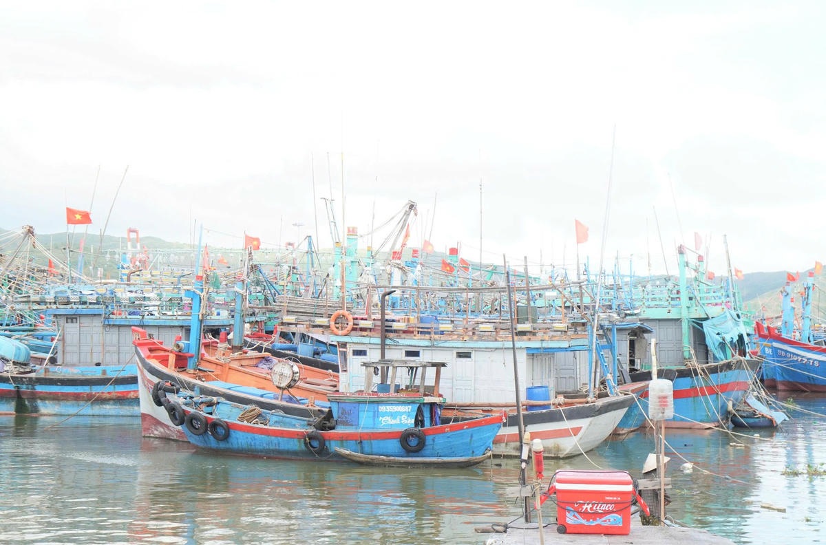 Nhiều tàu thuyền của tỉnh Gia Lai đã vào khu neo đậu trú tránh bão số 13 an toàn. Ảnh: Đ.Sang.