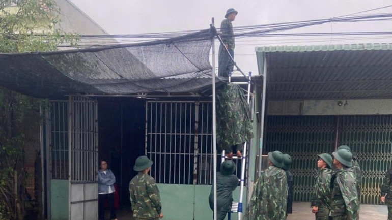 Bộ đội Biên phòng giúp người dân gia cố nhà cửa.