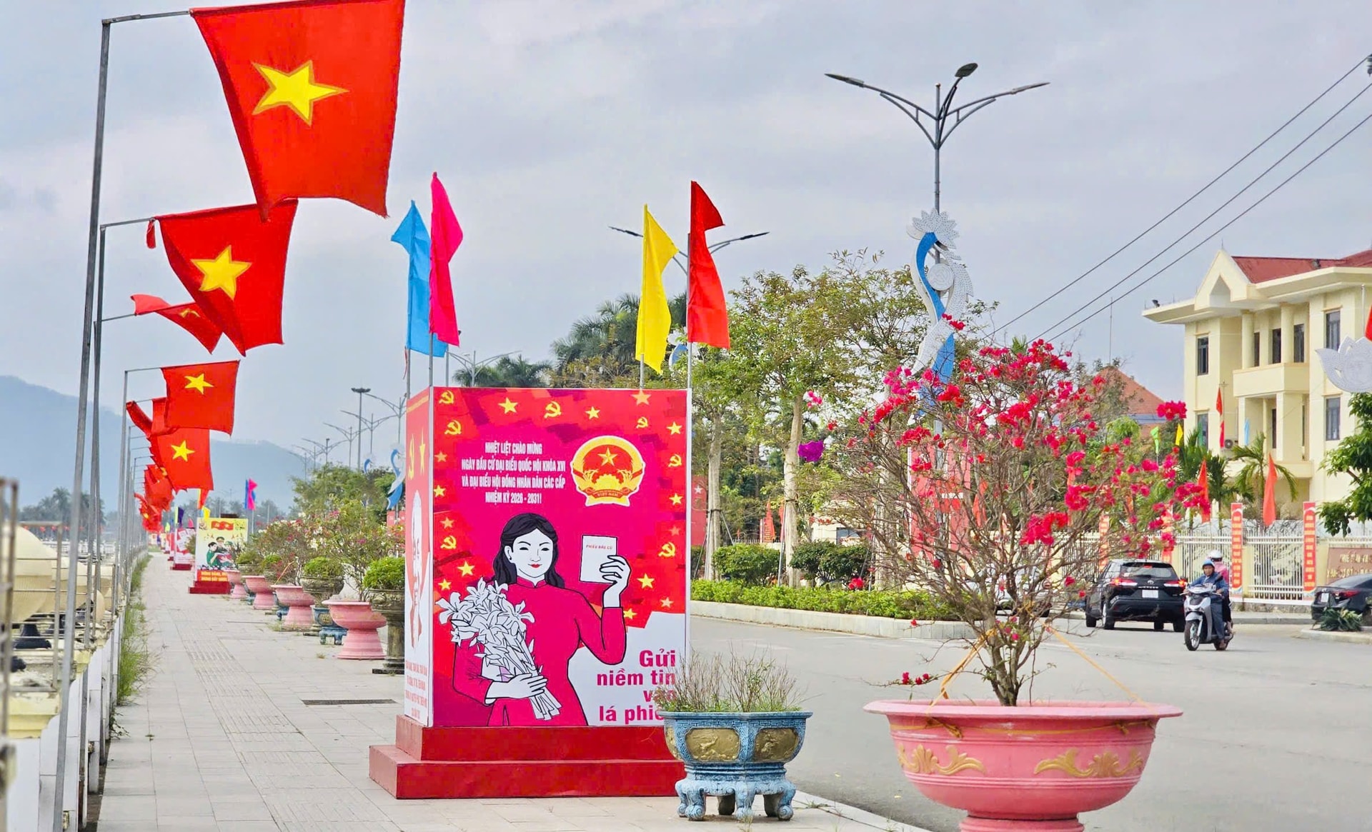 Đường ở Gia Lai nhập tràn cờ hoa chào mừng Đại hội đại biểu toàn quốc lần thứ XIV của Đảng.