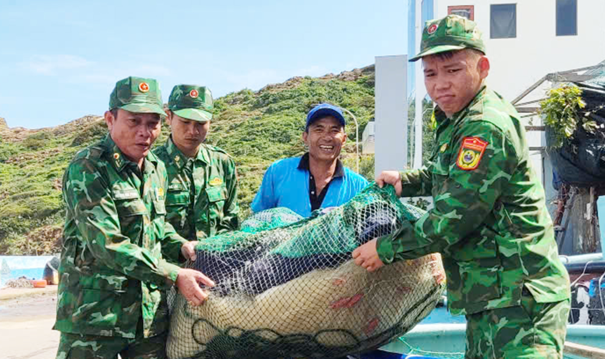 Lực lượng biên phòng tỉnh Gia Lai hỗ trợ ngư dân ven biển di dời ngư cụ lên cao