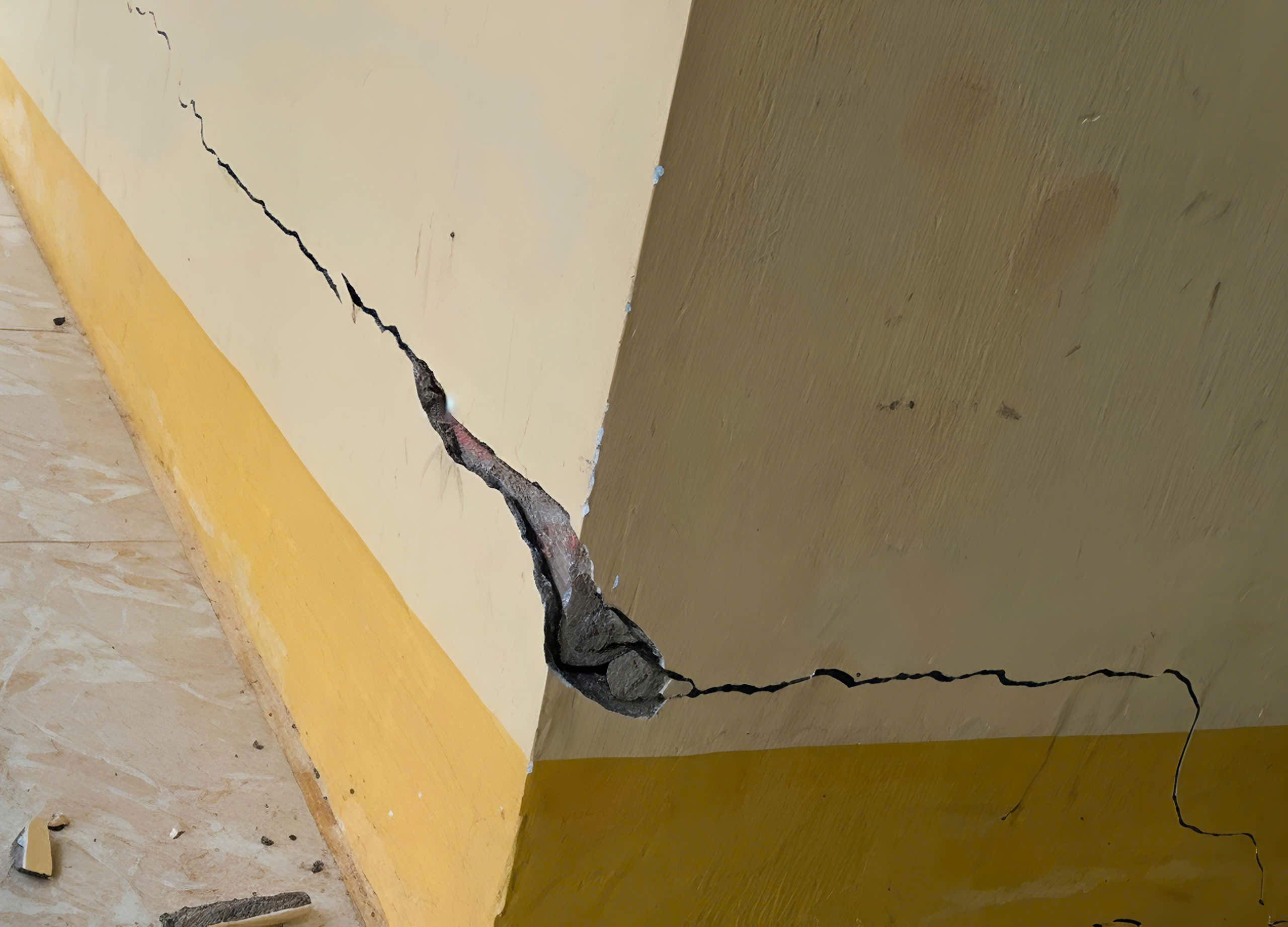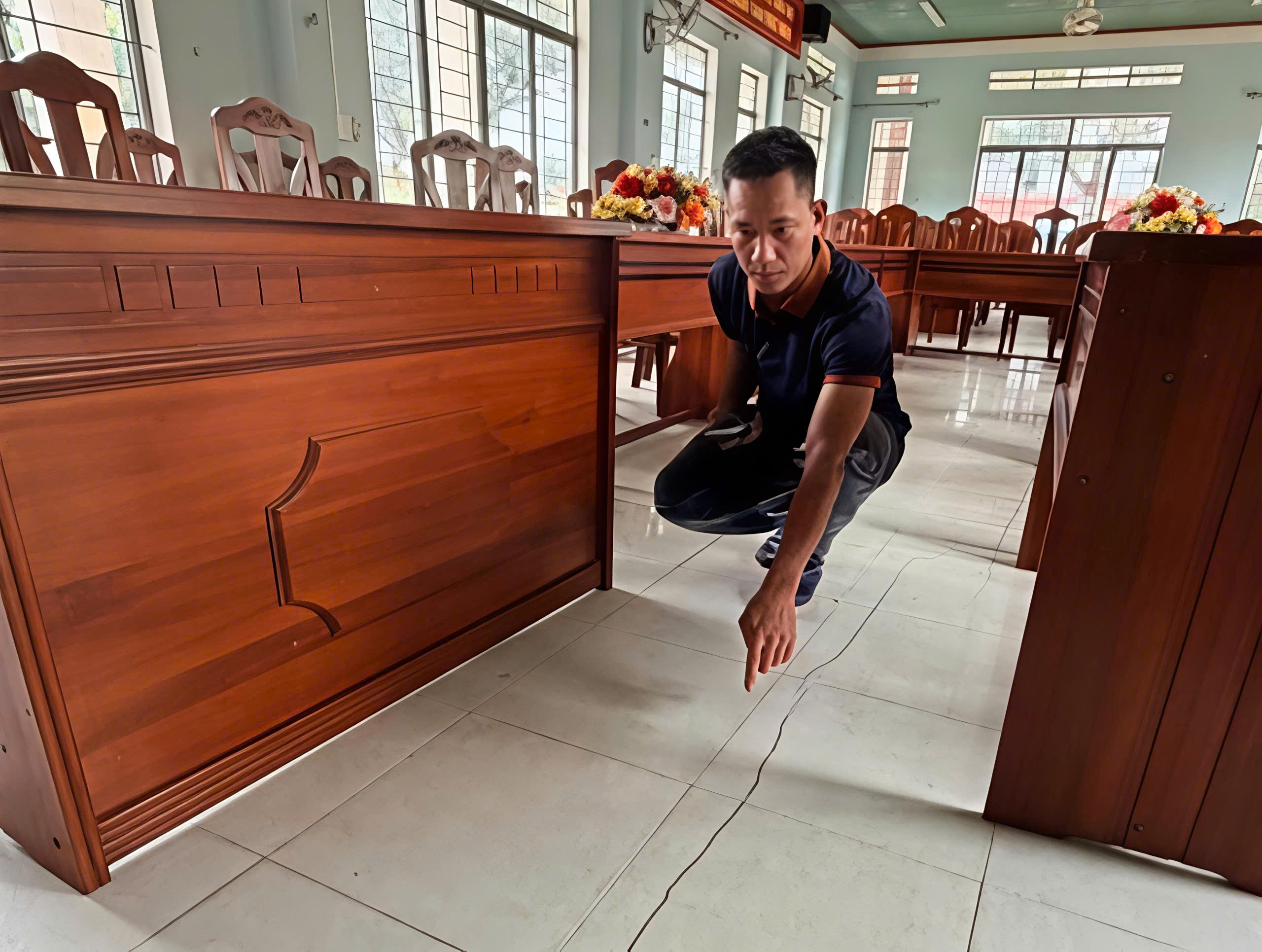 Hội trường Đảng ủy xã có vết nứt dài khoảng 20m