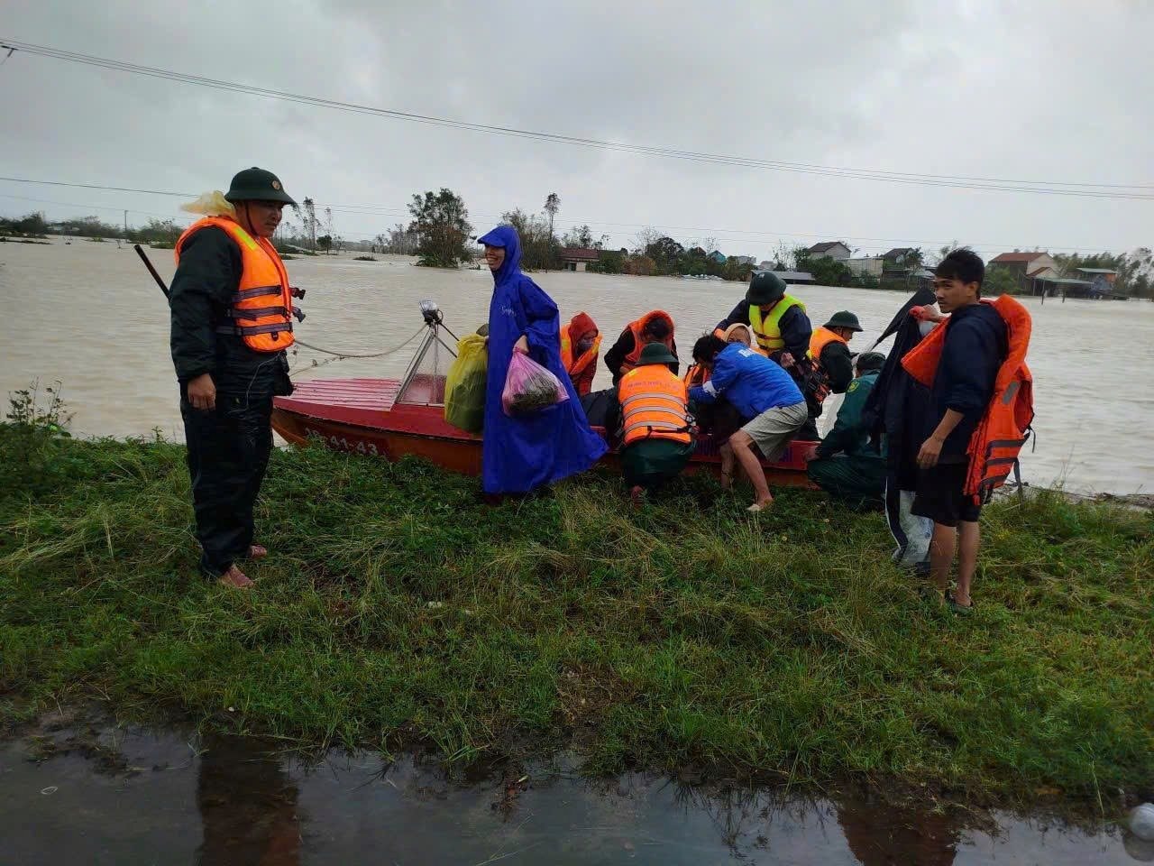 Cán bộ, chiến sĩ PTKV6 – An Nhơn Đông tiếp tục đưa người dân ra khỏi vùng ngập sâu bằng xuồng máy.