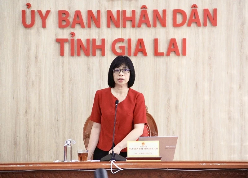 Phó Chủ tịch UBND tỉnh Gia Lai Nguyễn Thị Thanh Lịch phát biểu tại cuộc họp.