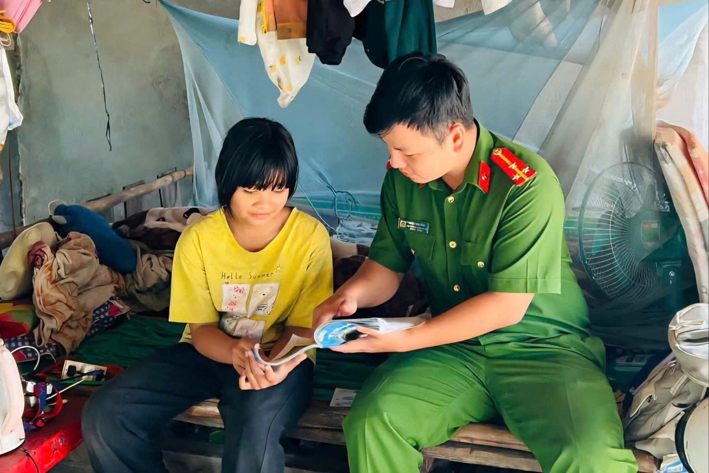 Không chỉ dừng lại ở việc trao quà, các đoàn viên còn dành thời gian trò chuyện, động viên và trực tiếp hướng dẫn em học bài. Hình ảnh cán bộ, chiến sĩ Công an xã trong màu áo xanh tận tình giảng giải từng bài toán, từng trang sách đã góp phần tạo nên không khí gần gũi, ấm áp, lan tỏa tinh thần nhân văn và trách nhiệm vì thế hệ trẻ.