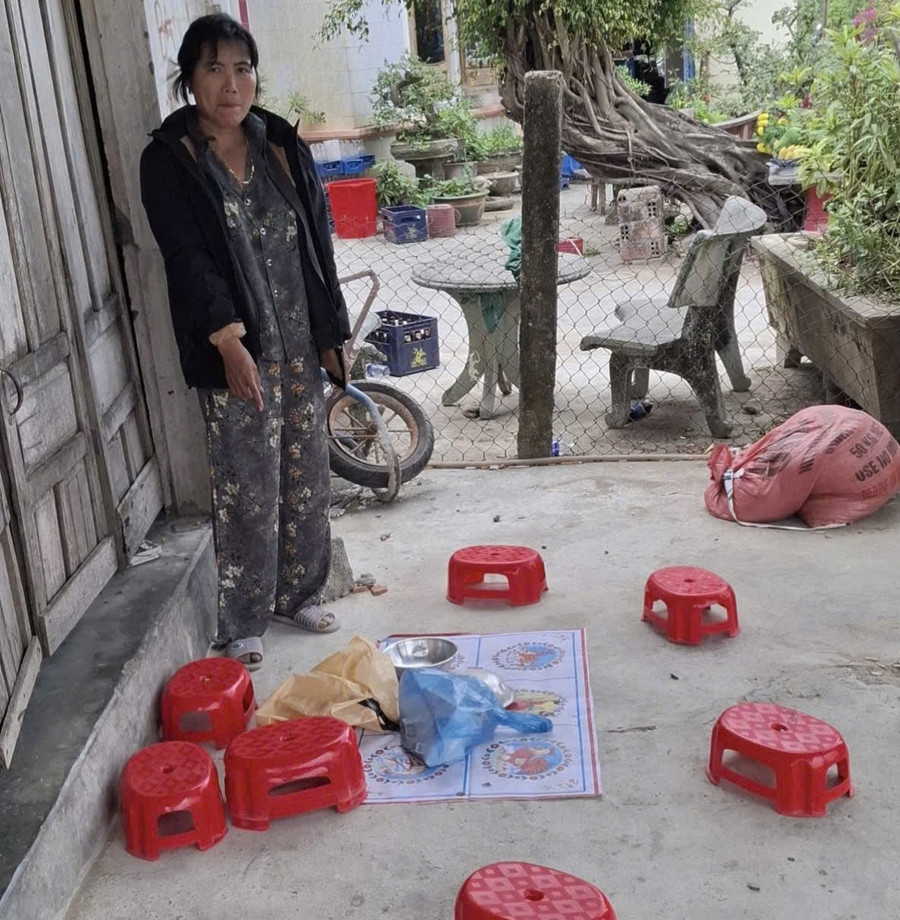 Nguyễn Thị Thỏ (đối tượng cầm cái) tại hiện trường.