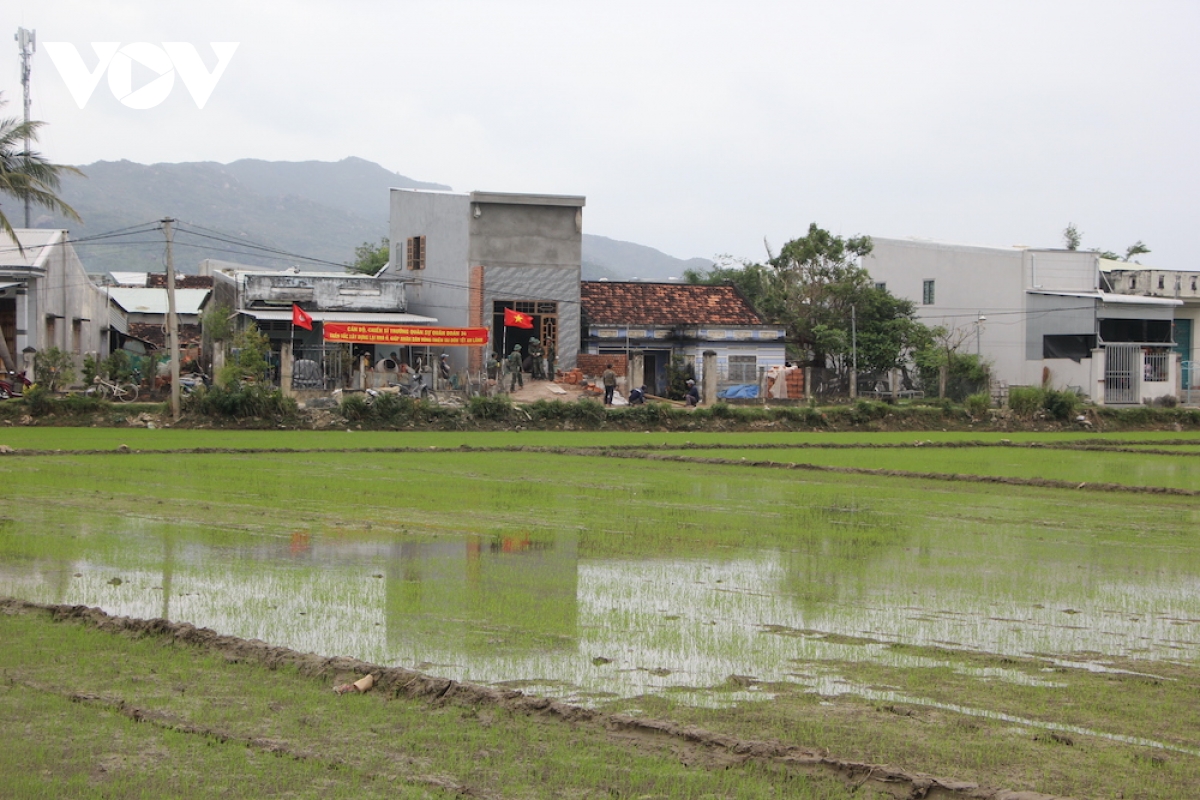 Chiều 9/1, ngôi nhà của bà Huỳnh Thị Định ở thôn Chánh Định, xã Ngô Mây, tỉnh Gia Lai, đã vào công đoạn hoàn thiện cuối cùng. Nhà đã được sơn hoàn thiện, bộ đội tập trung xây nốt phần tường bao, cổng nhà, lát gạch và lắp đặt cánh cửa. Ai nấy đều tranh thủ từng giờ, từng việc, với mong muốn hoàn thiện ngôi nhà một cách trọn vẹn nhất để kịp bàn giao cho gia đình vào chiều 10/1.