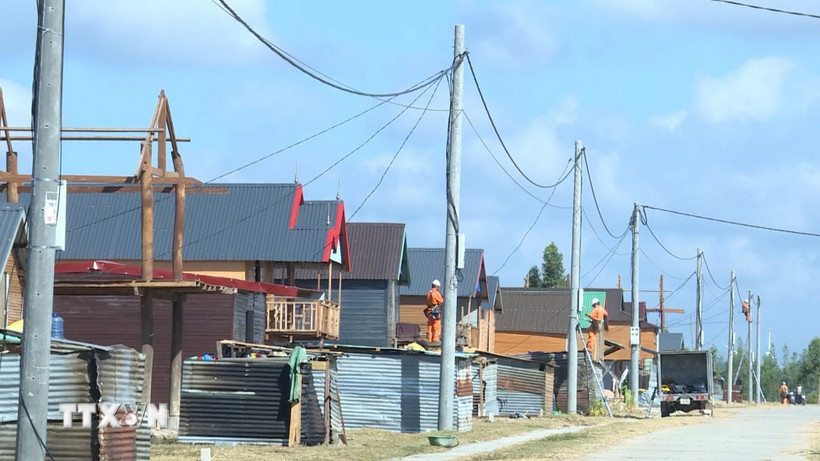 Khu tái định cư mới tại xã Pờ Tó, tỉnh Gia Lai với đầy đủ các tiện ích thiết yếu phục vụ cho 160 hộ dân. (Ảnh: Hoài Nam/TTXVN)