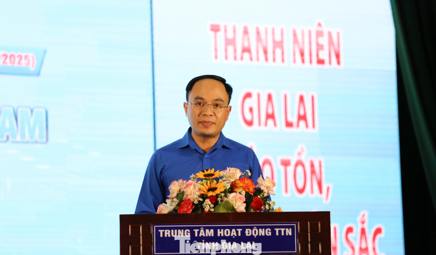 Anh Đỗ Đức Thanh - Phó Bí thư Thường trực Tỉnh Đoàn, Chủ tịch Hội LHTN Việt Nam tỉnh Gia Lai phát biểu. Ảnh: Trương Định