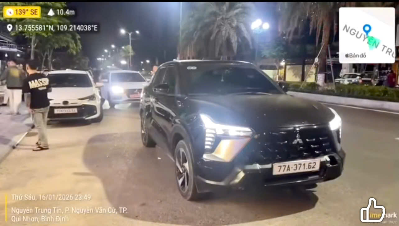 Trước đó, trưa 21/1, trang fanpage của Cục CSGT (Bộ Công an) đăng tải clip và thông tin phản ánh về một trường hợp ô tô dừng, đỗ giữa đường Nguyễn Trung Tín (phường Quy Nhơn Nam). Hình ảnh vi phạm do người dân ghi lại và gửi phản ánh thông qua ứng dụng VNeTraffic.