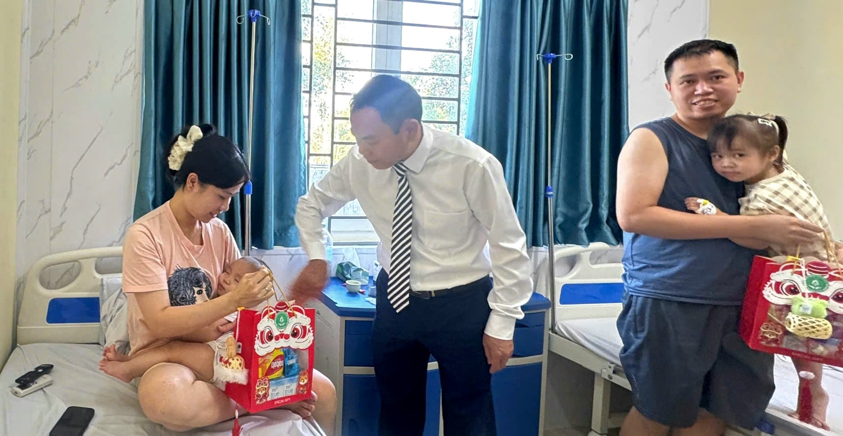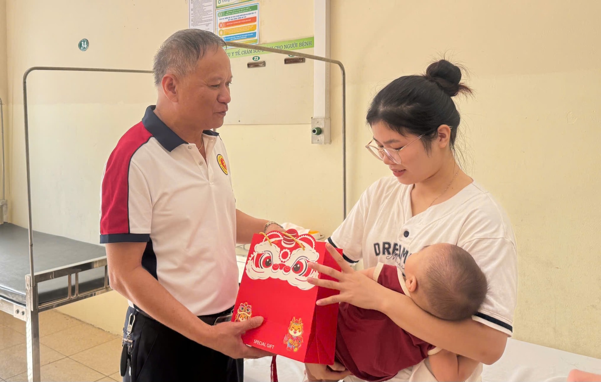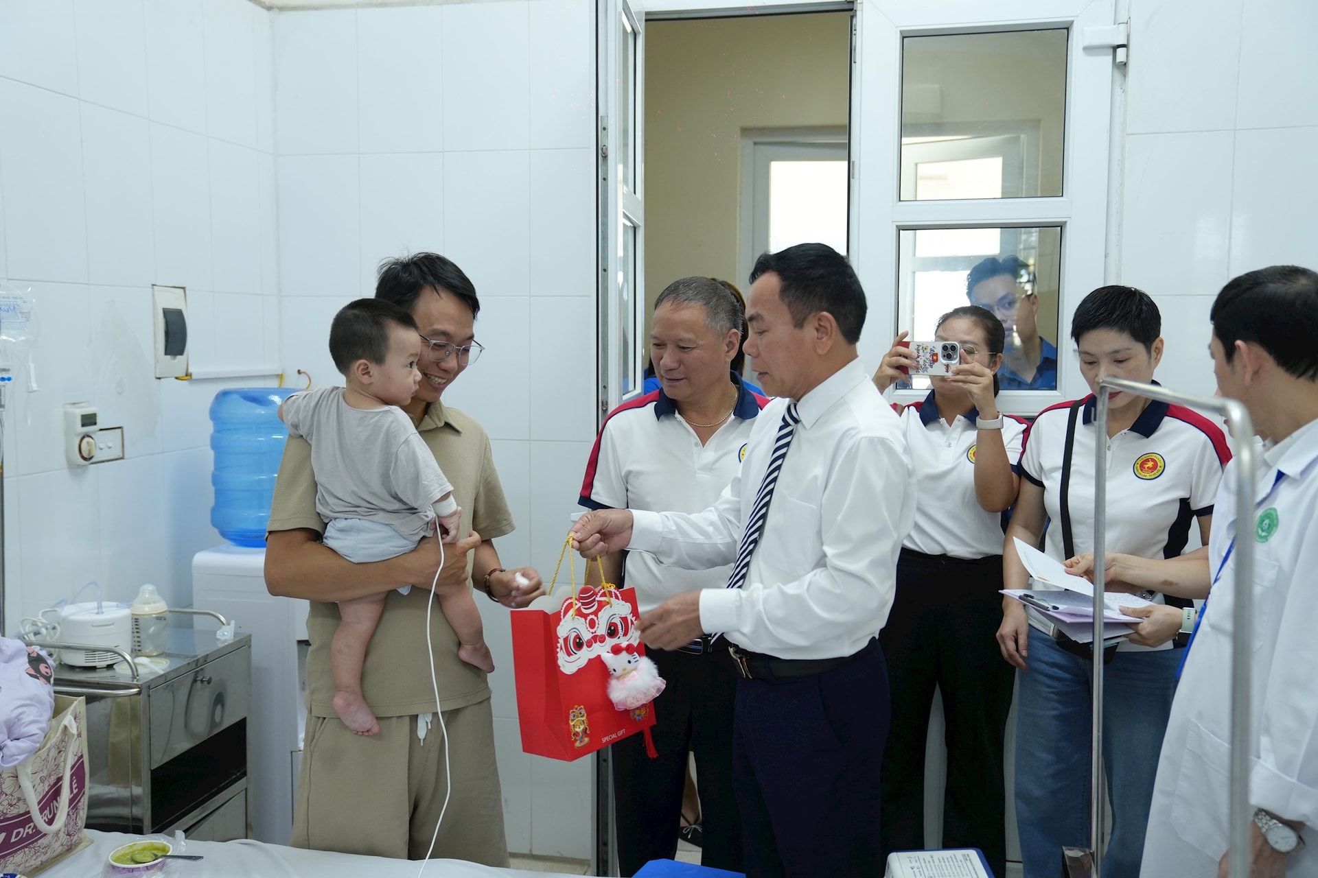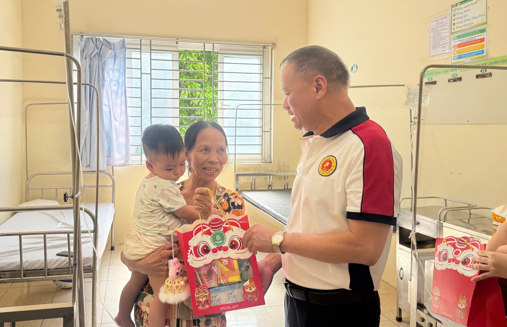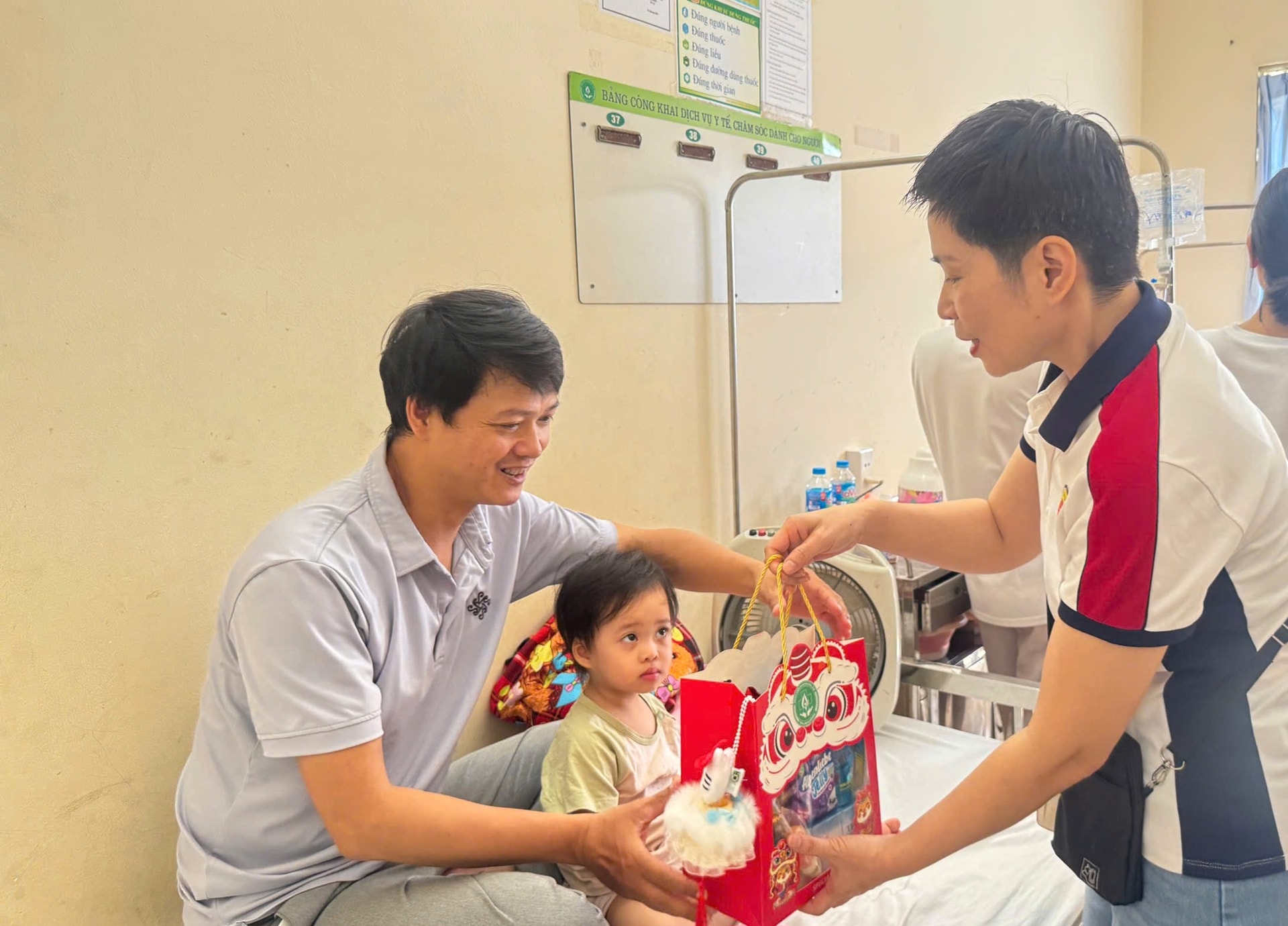 Trao quà cho các trẻ em tại Bệnh viện Đa khoa Gia Lâm. Ảnh: Trung Nguyên