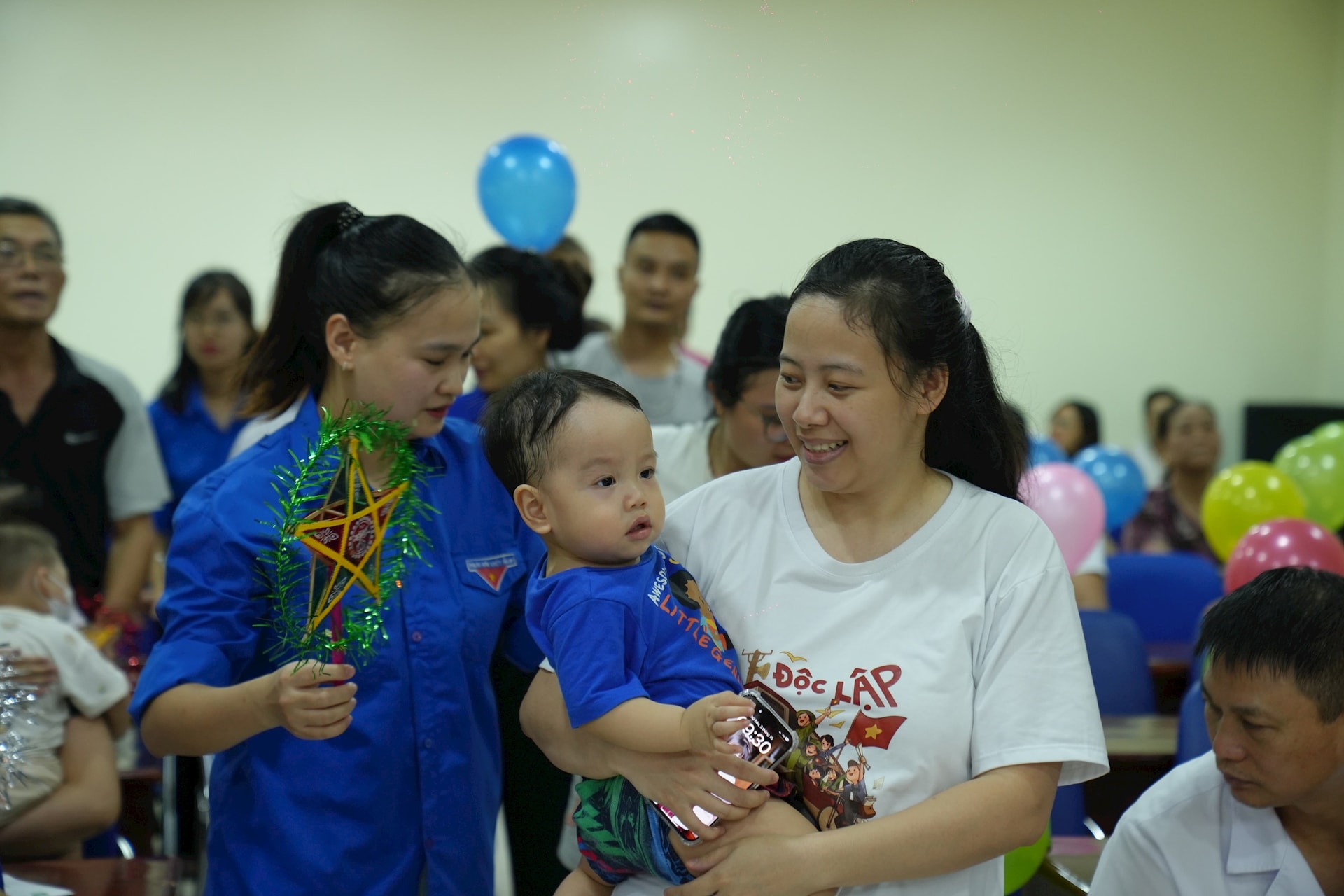 Các trẻ em đang điều trị tại Bệnh viện Đa khoa Gia Lâm được nhận quà Trung thu. Ảnh: Trung Nguyên