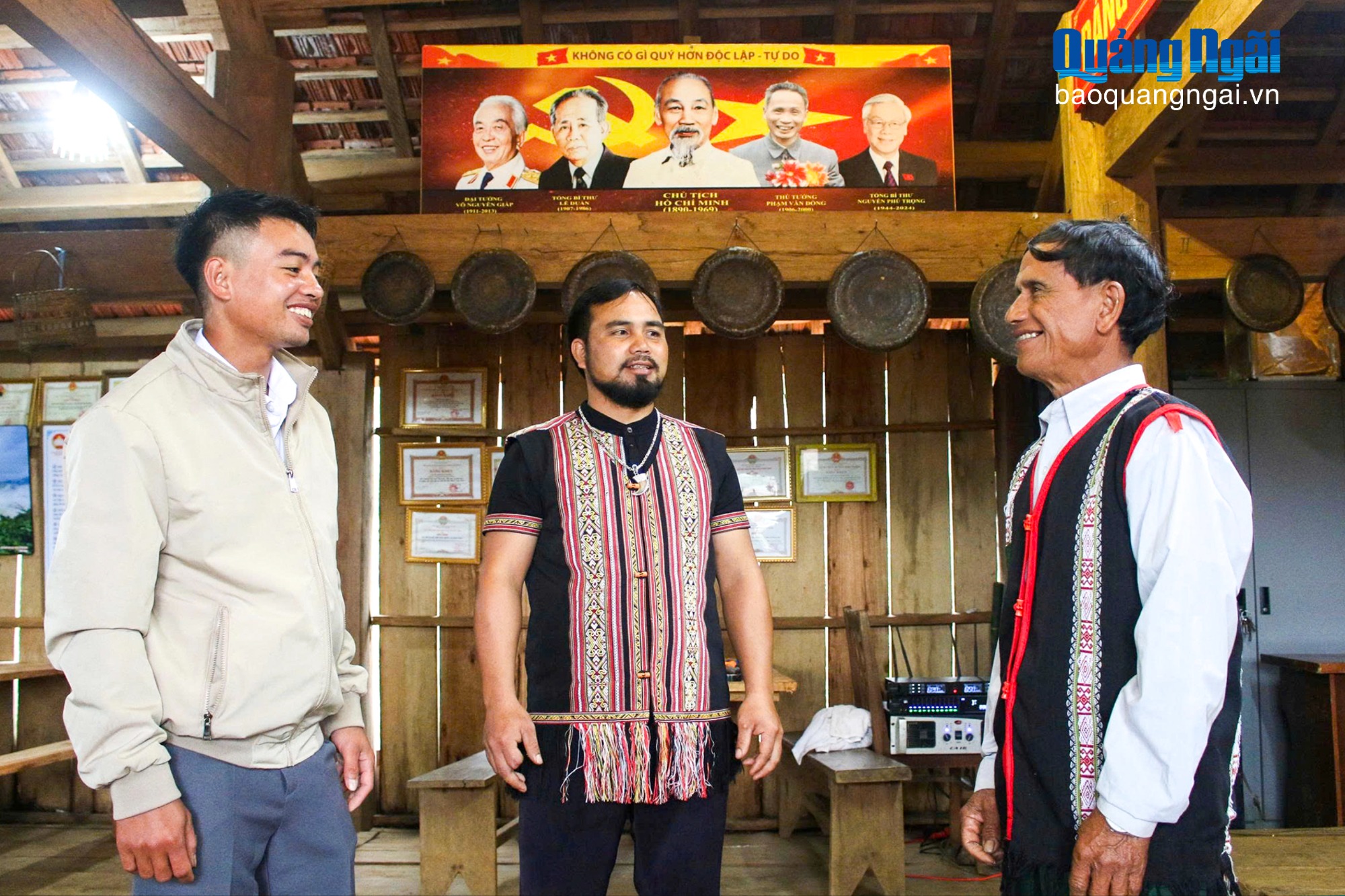 Anh A Nấc (ở giữa) được người dân thôn Kon Chênh bầu làm già làng, người có uy tín khi mới tuổi 35.
