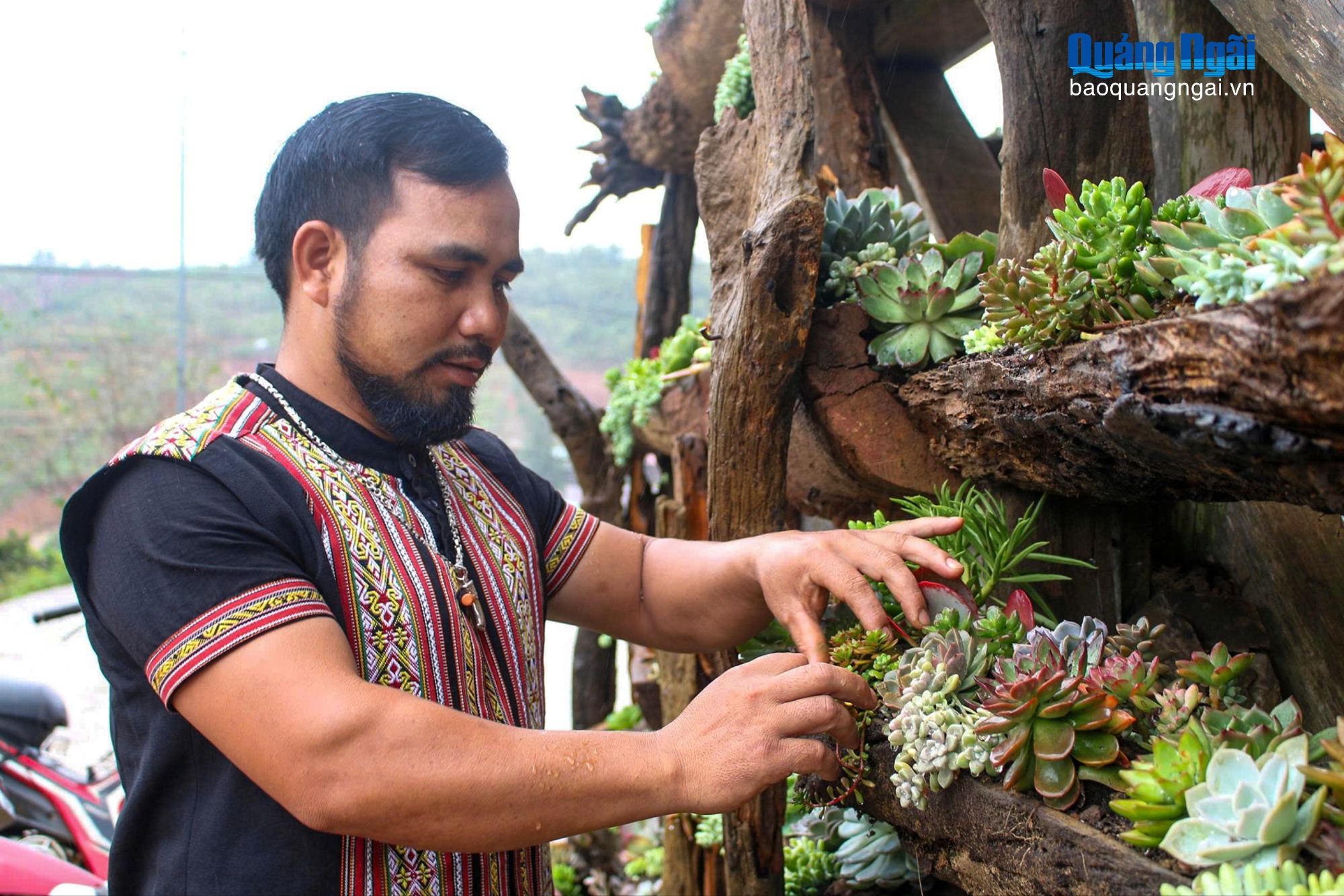 Anh A Nấc trồng cây, hoa tạo cảnh quan phục vụ du lịch.